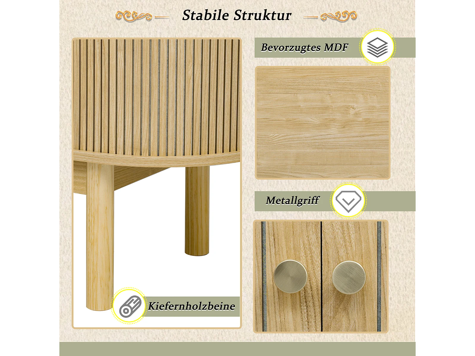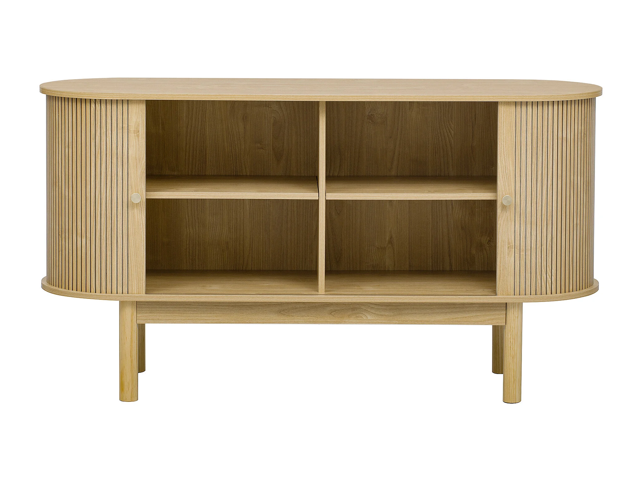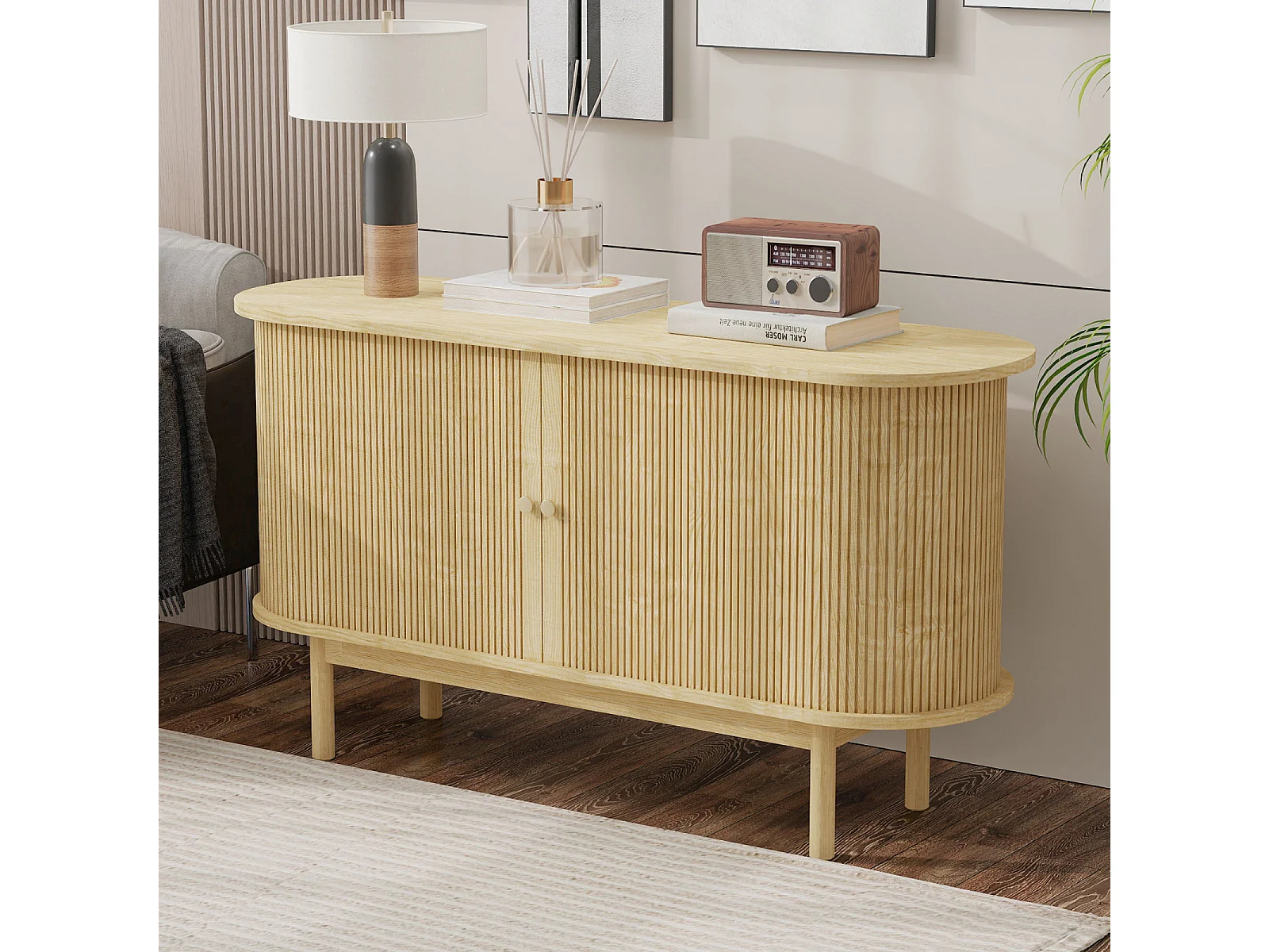 Buffet en bois style rétro moderne avec portes coulissantes, étagères réglables et pieds en pin, chêne clair, pour salle à manger, cuisine ou entrée