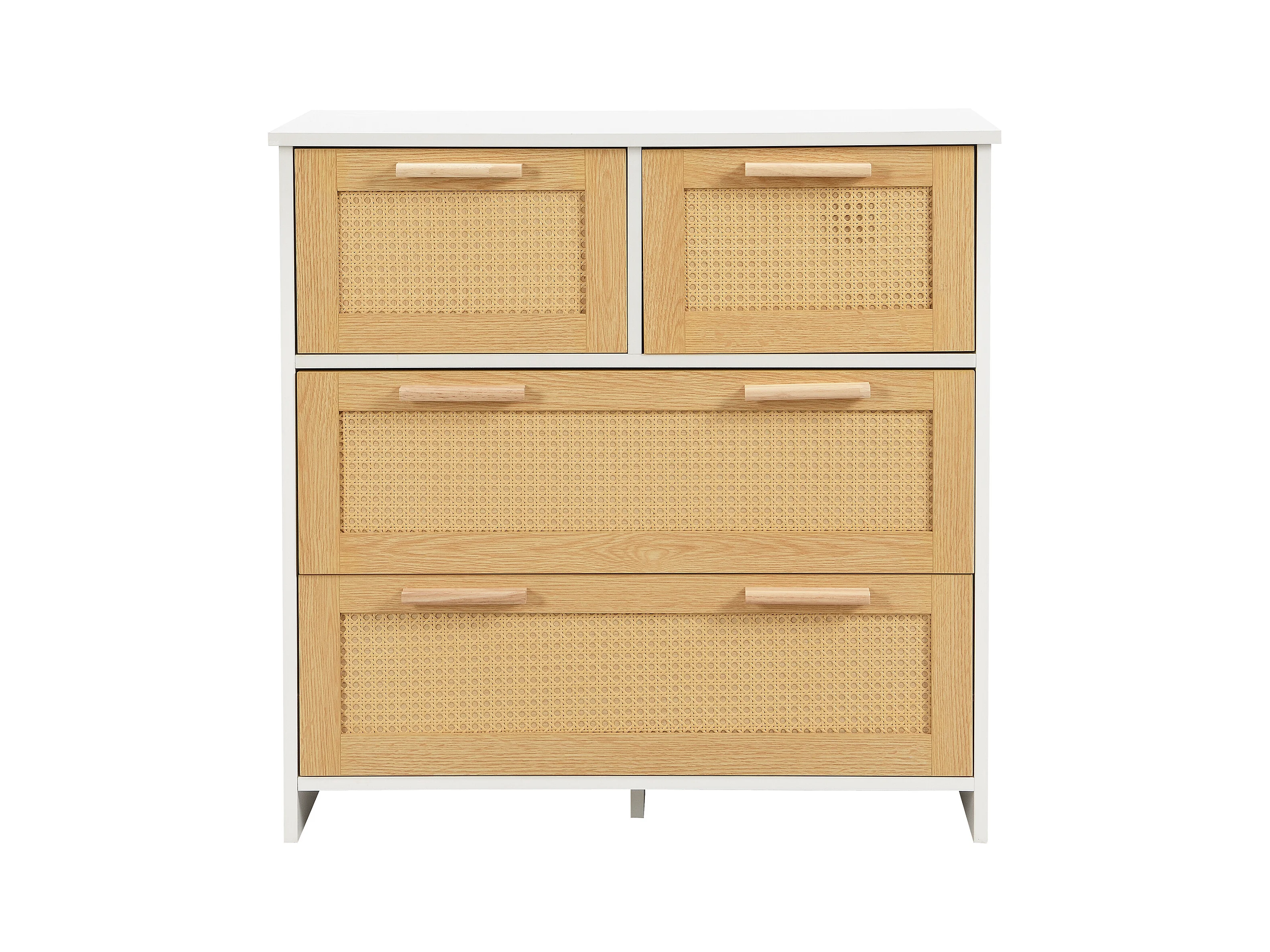 Buffet en rotin naturel avec 4 tiroirs Naturel et blanc 80x38x80cm
