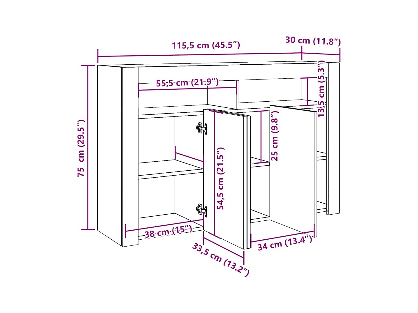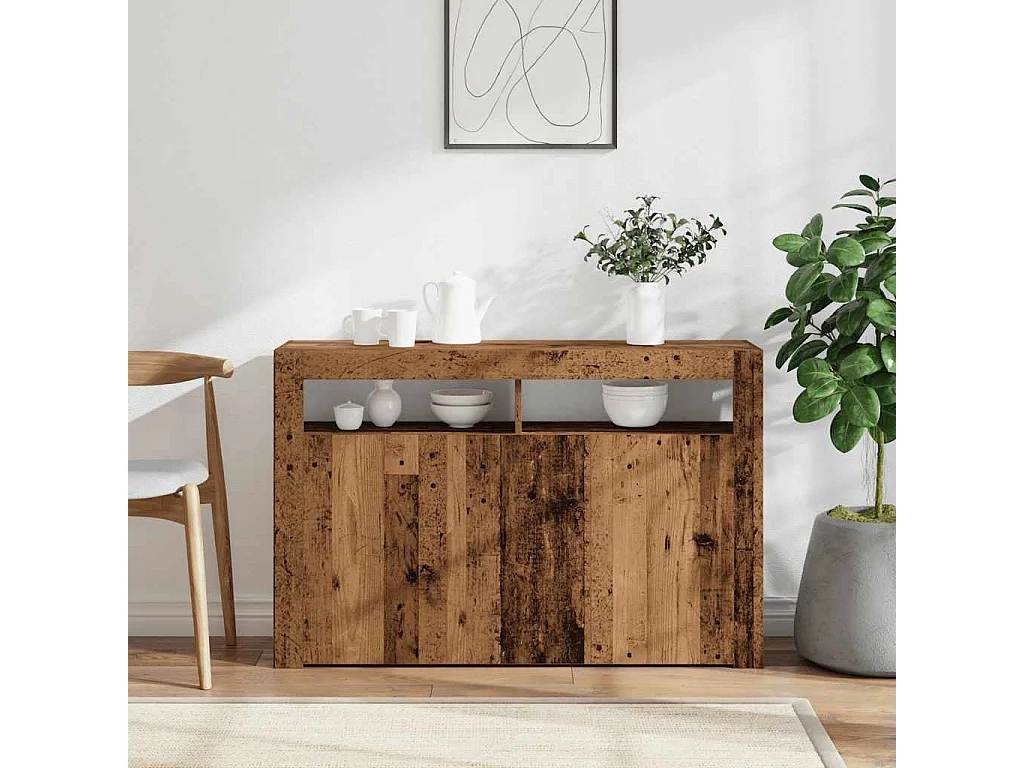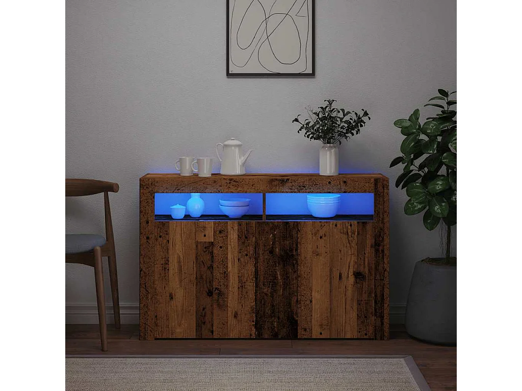 Buffet et lumières LED vieux bois 115,5x30x75cm bois ingénierie