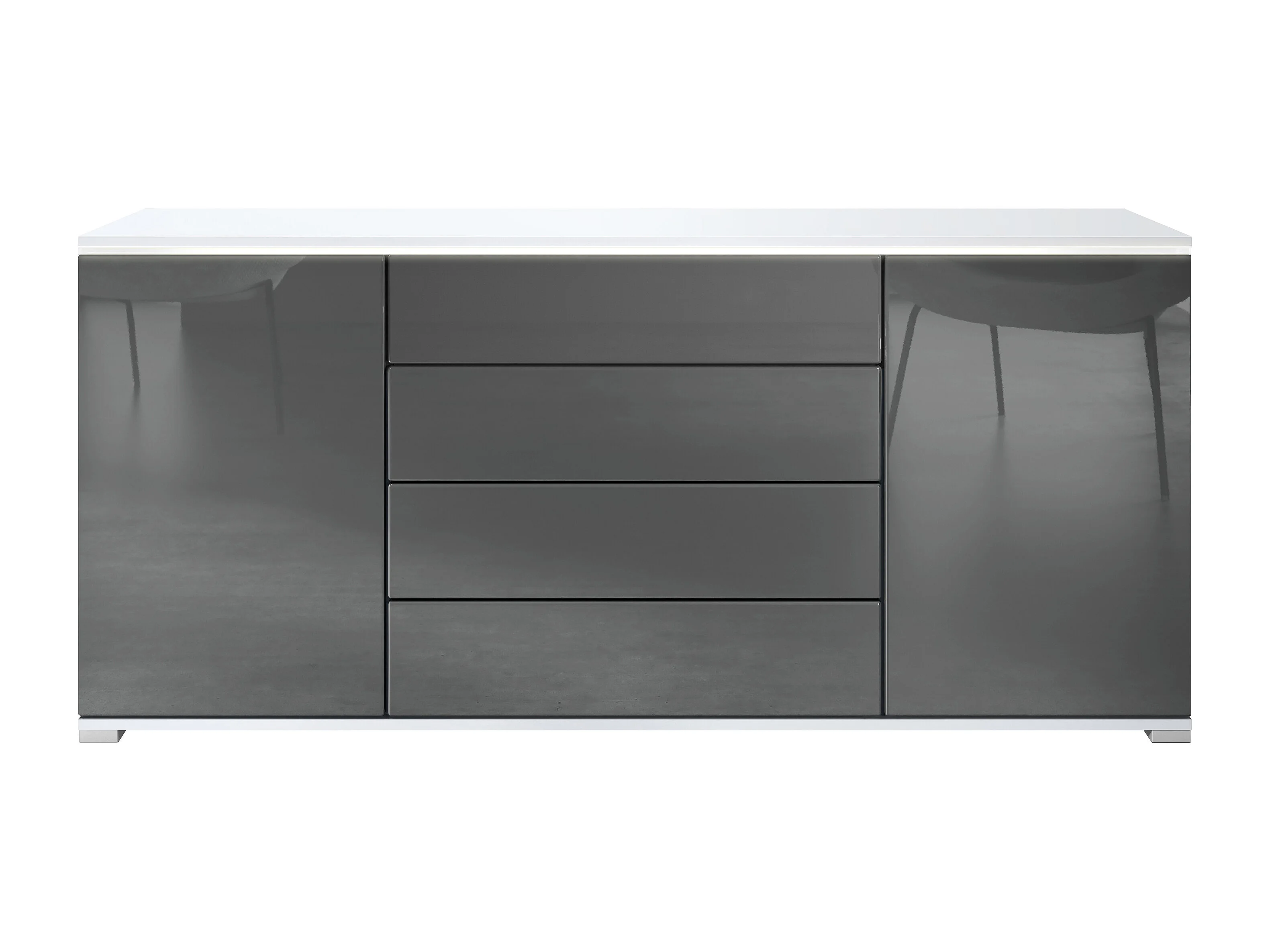 Buffet Faro V2 – Meuble avec 2 Portes & 4 Tiroirs, Armoire avec Bande LED Lumineuse, blanc mat / gris haute brillance (166,5 x 75,5 x 35)