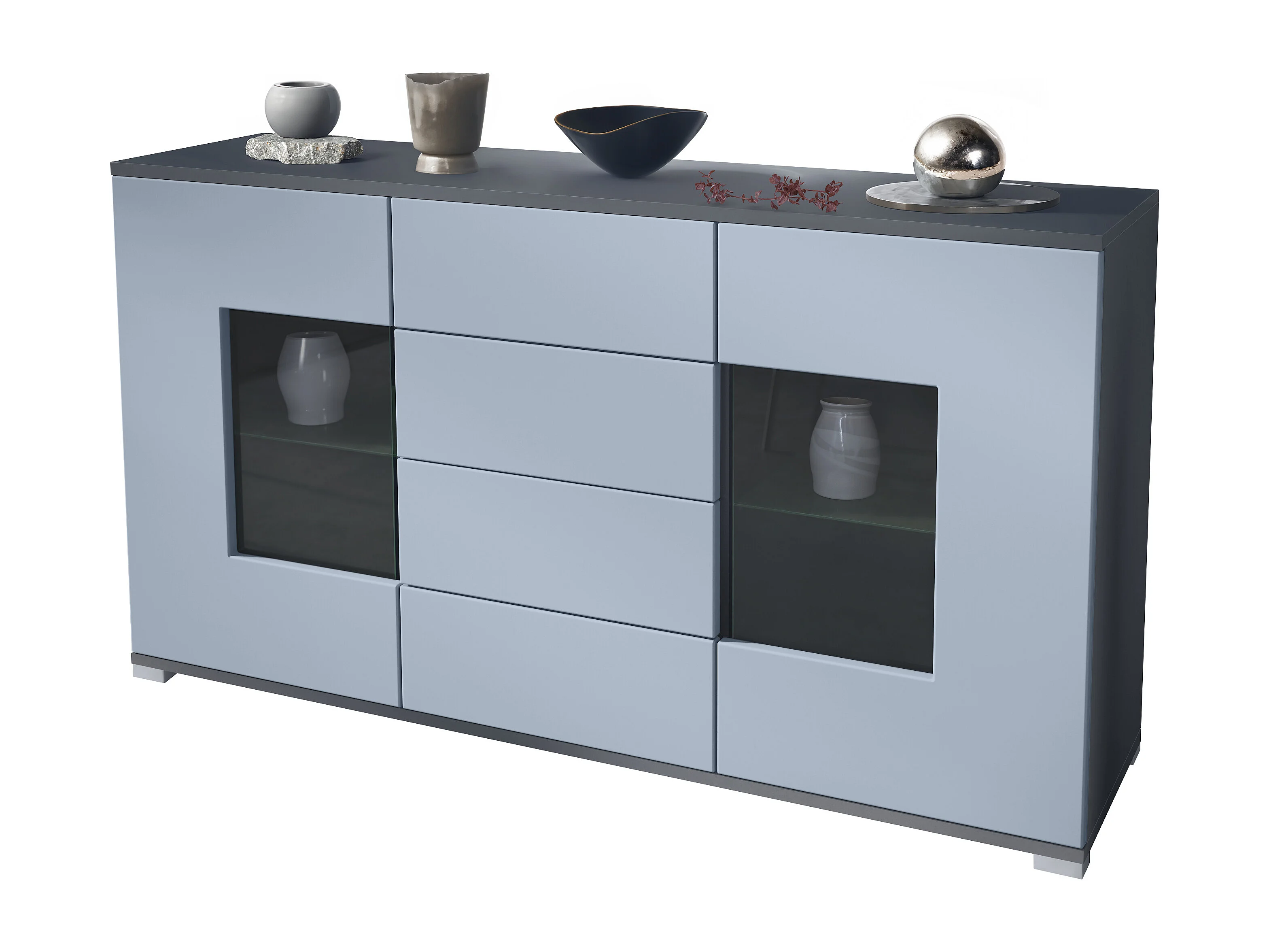 Buffet Grömitz V1 – Meuble avec 2 Grandes Portes et 4 Tiroirs, anthracite mat/denim mat (138,5 x 75,5 x 35)