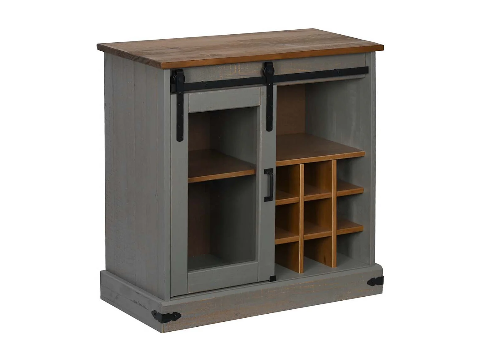 Buffet HALDEN porte coulissante gris 80x40x80 cm bois massif