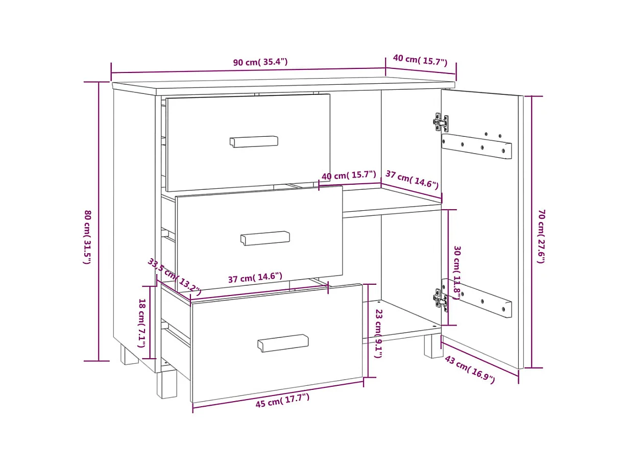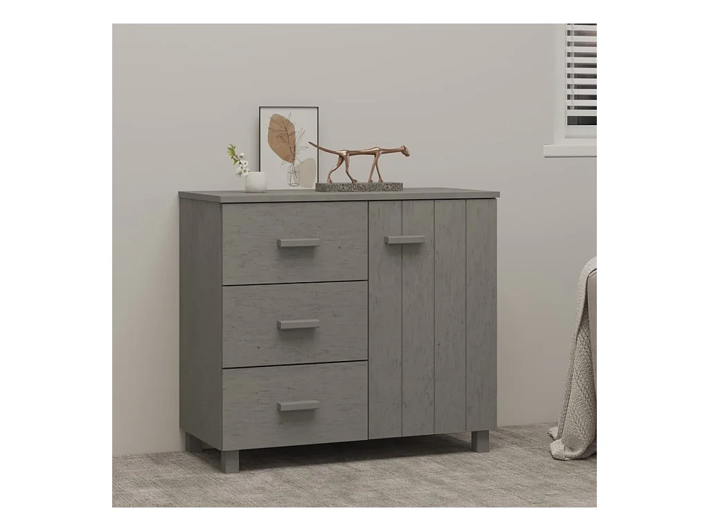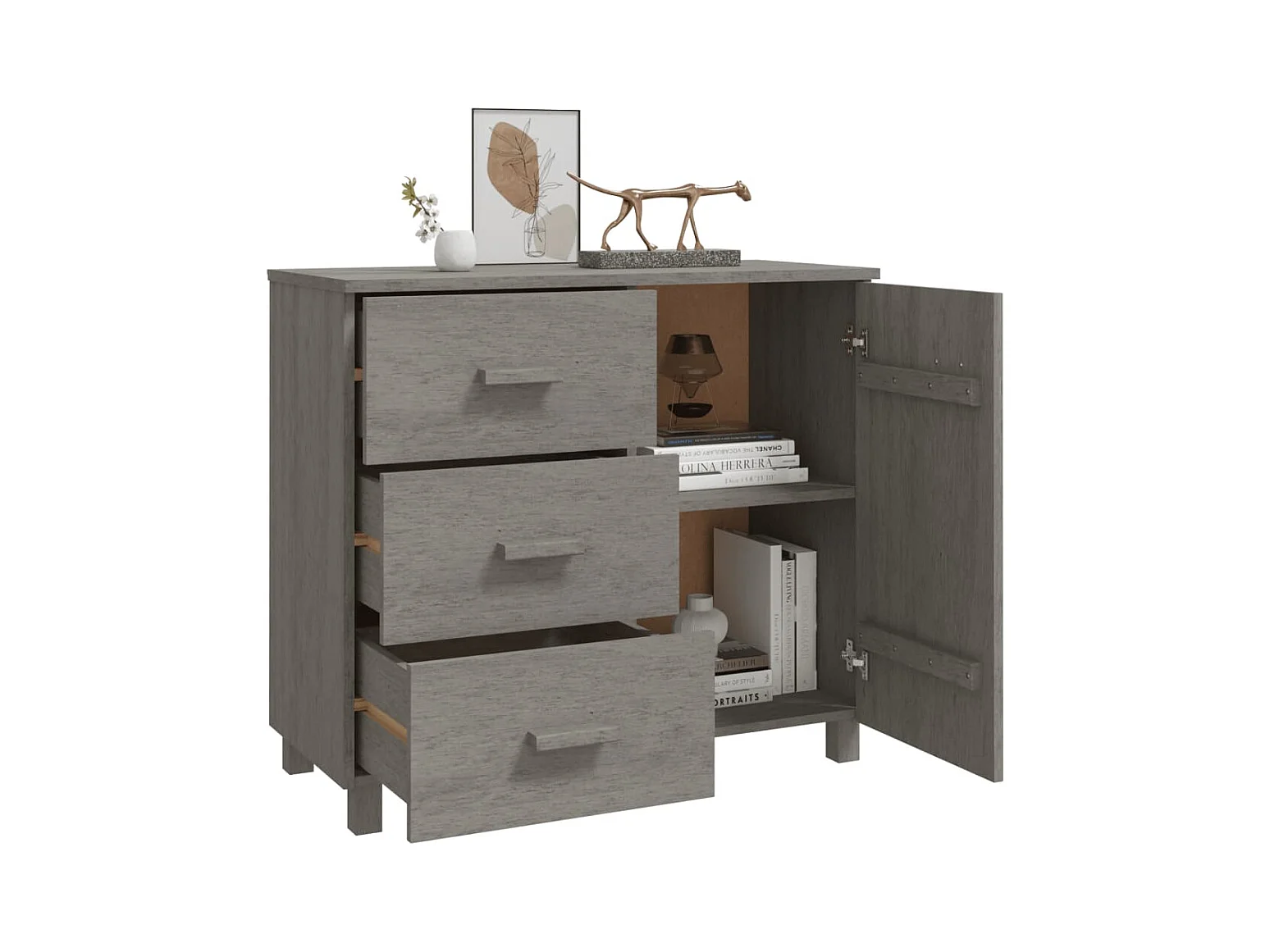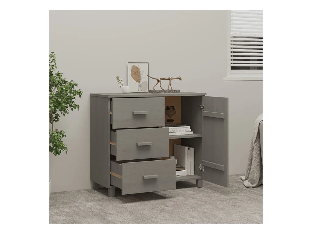Buffet HAMAR Gris clair 90x40x80 cm Bois massif de pin