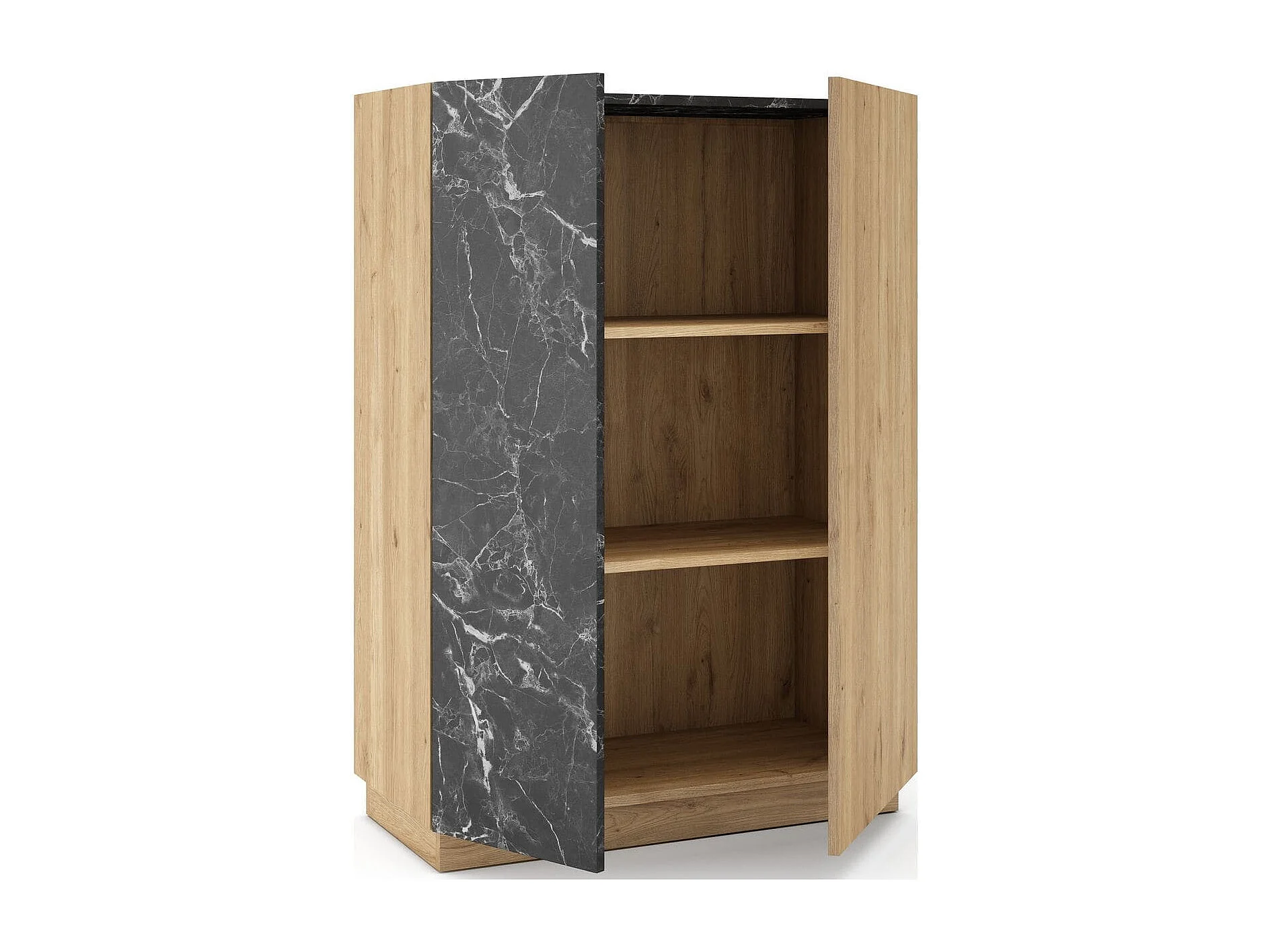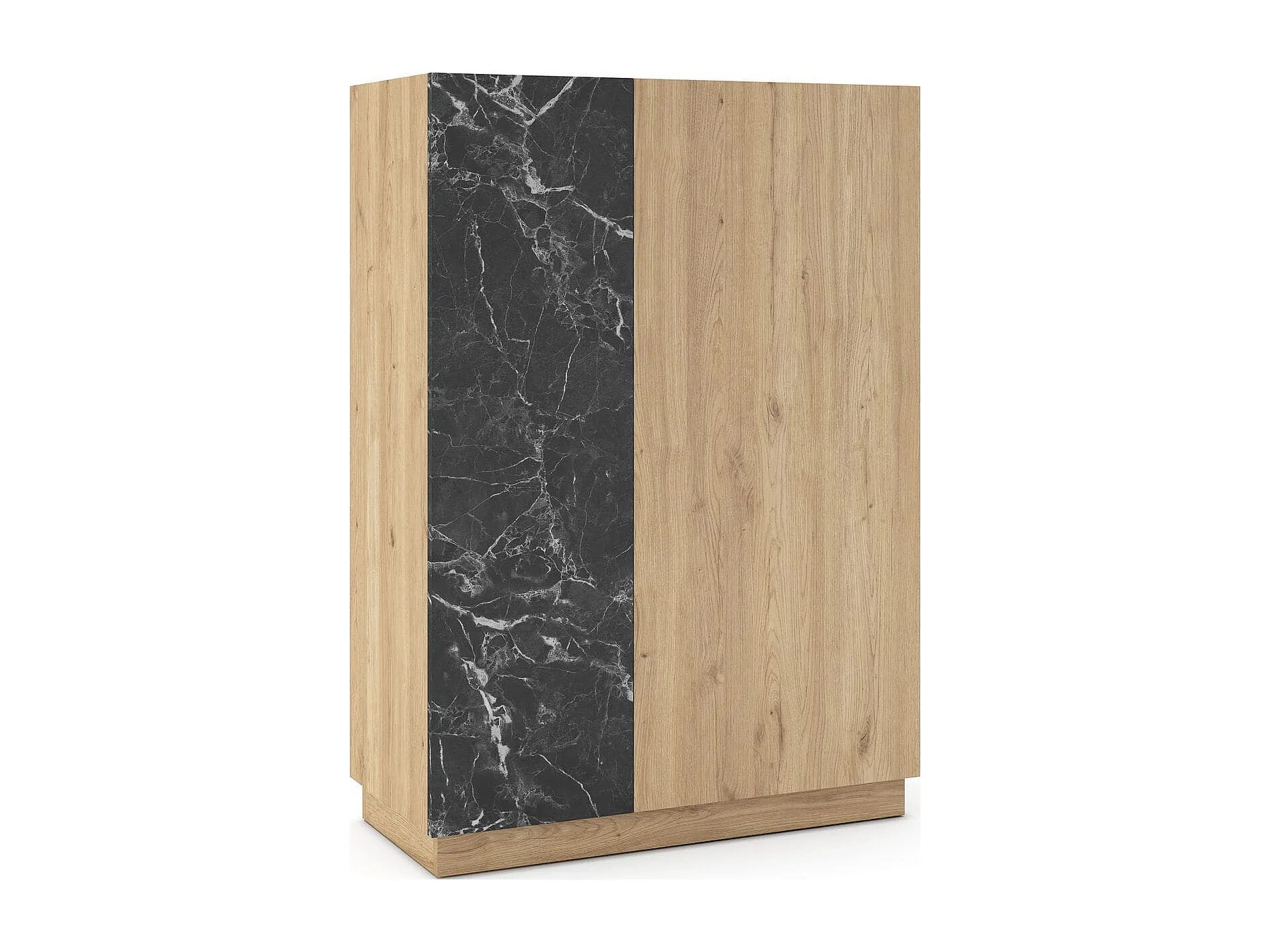 Buffet haut 2 portes effet bois et marbre noir 90 cm - Dilan