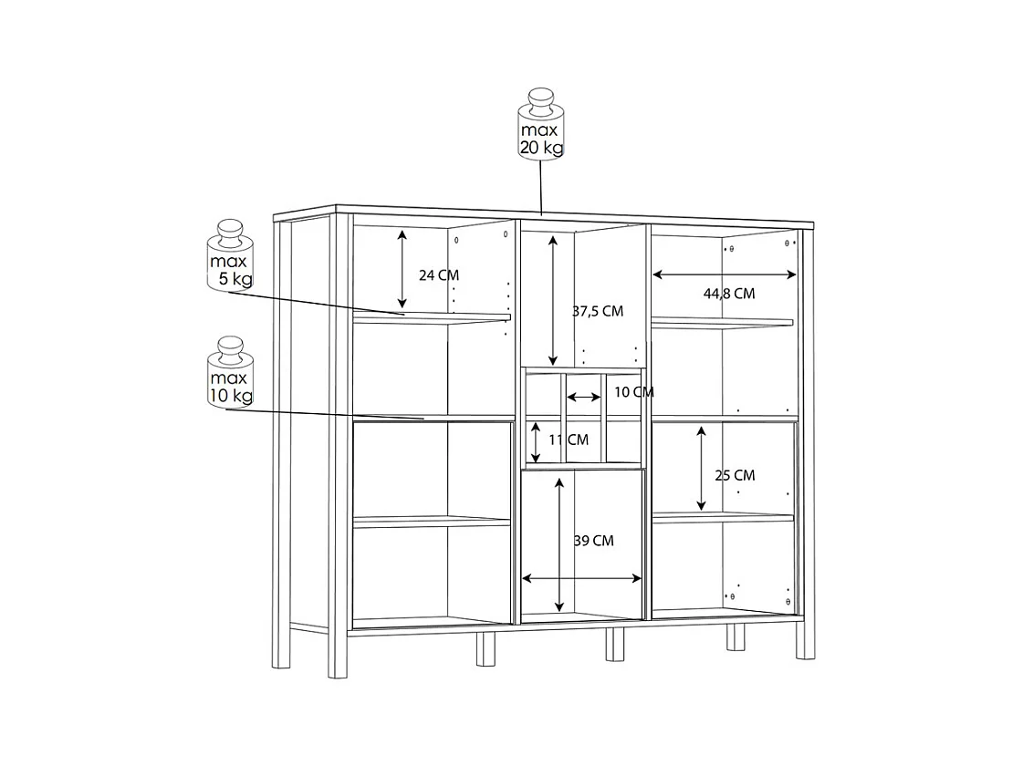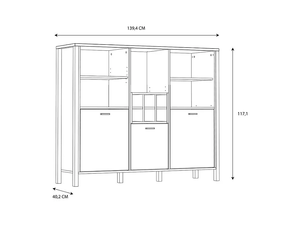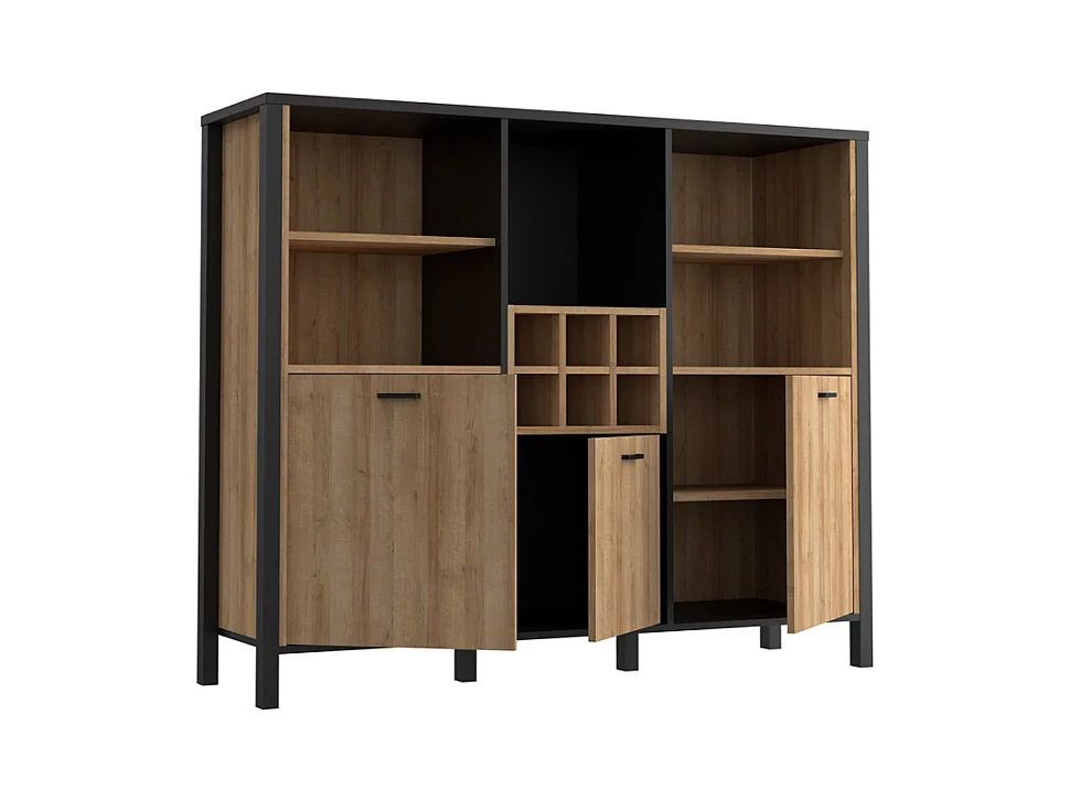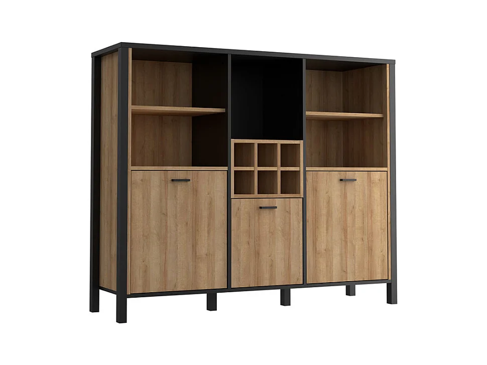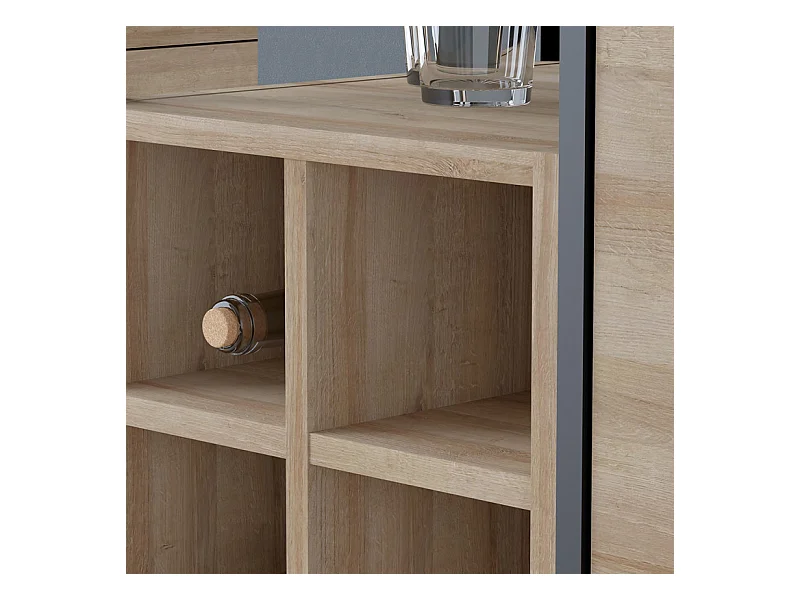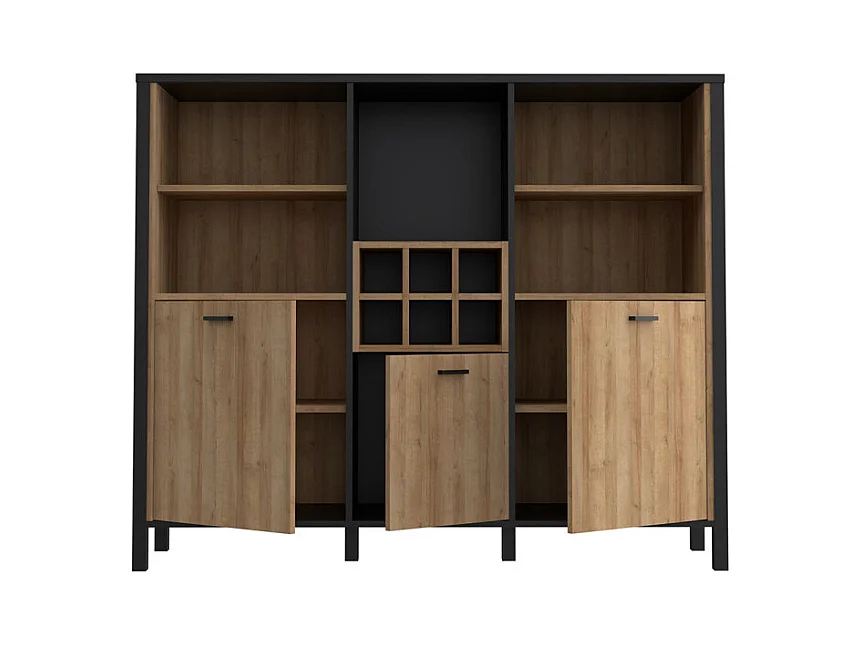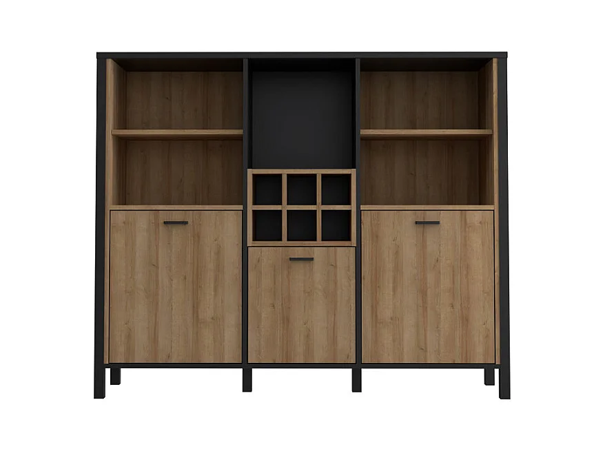 Buffet haut décor noir et effet chêne avec poignées noir - MODE