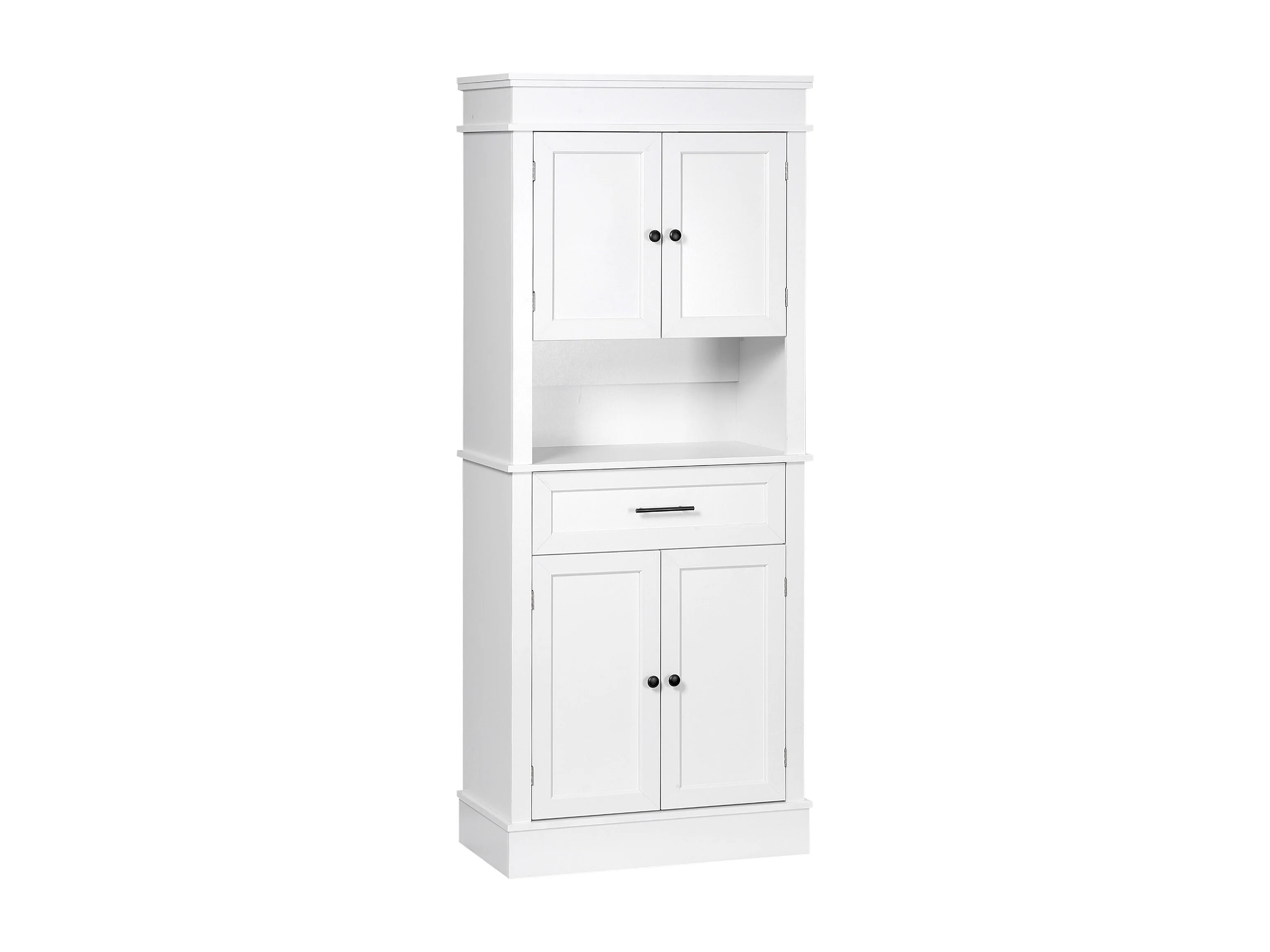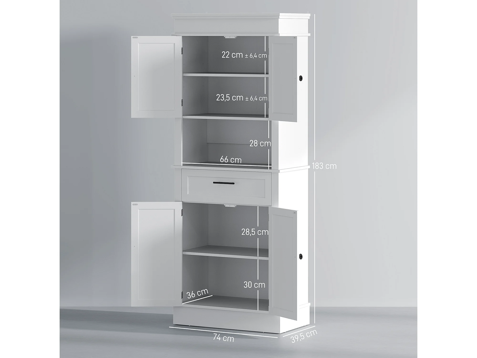 Buffet haut armoire de cuisine multi-rangement 2 placards 2 portes tiroir niche MDF panneaux blanc