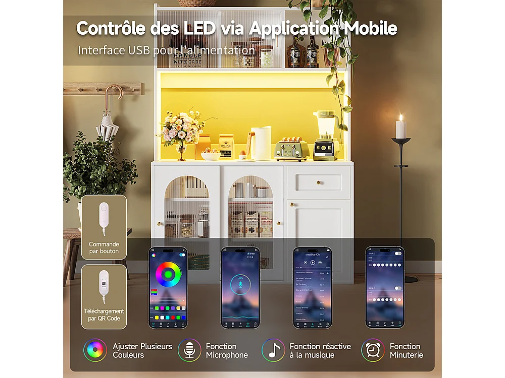 Buffet haut armoire haute vitrine étagères réglables armoire salle à manger éclairage LED blanc
