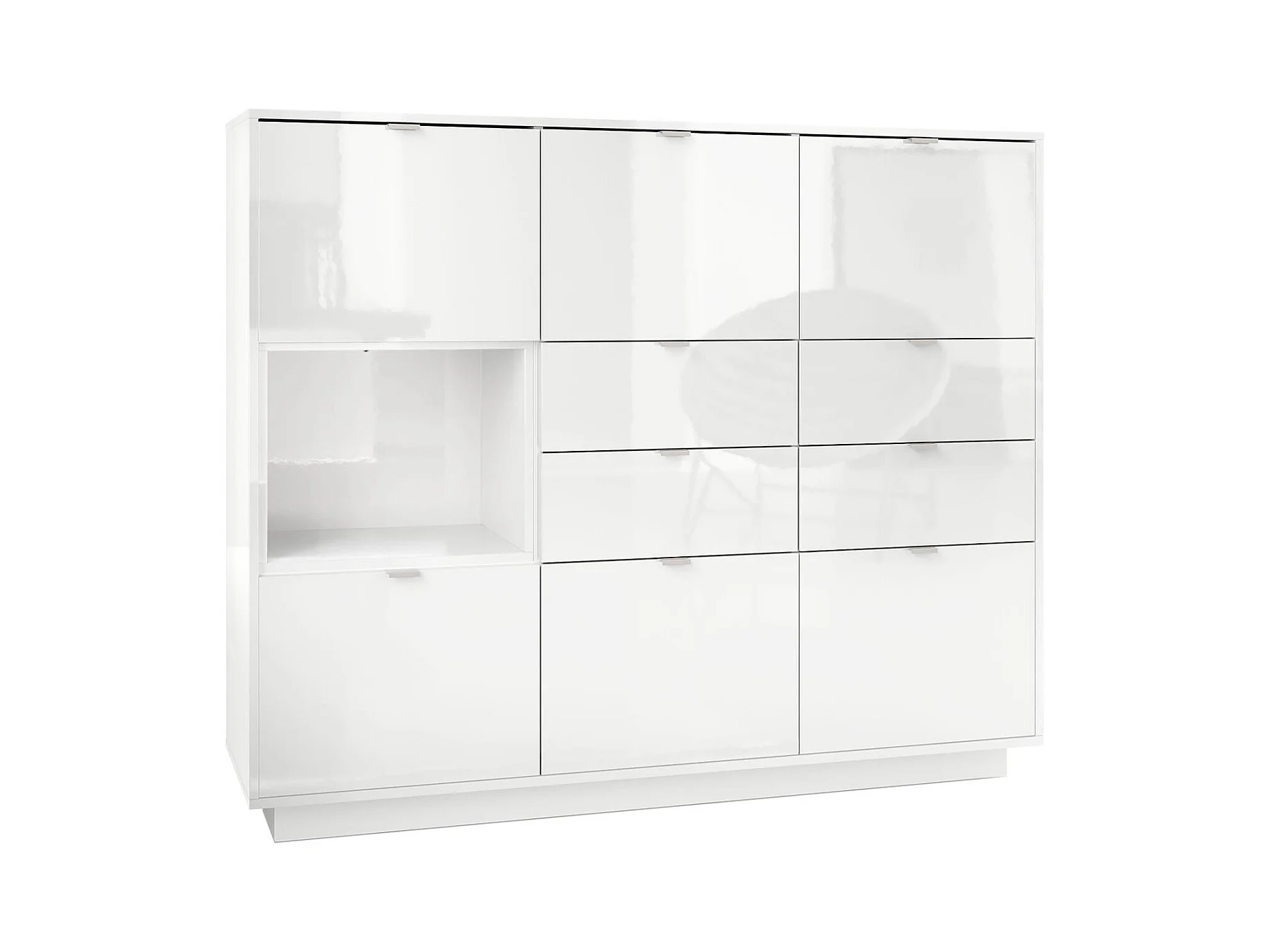 Buffet haut Armoire Metro V2, Corps en Blanc haute brillance / Façades en Blanc haute brillance avec une insertion en Blanc haute brillance