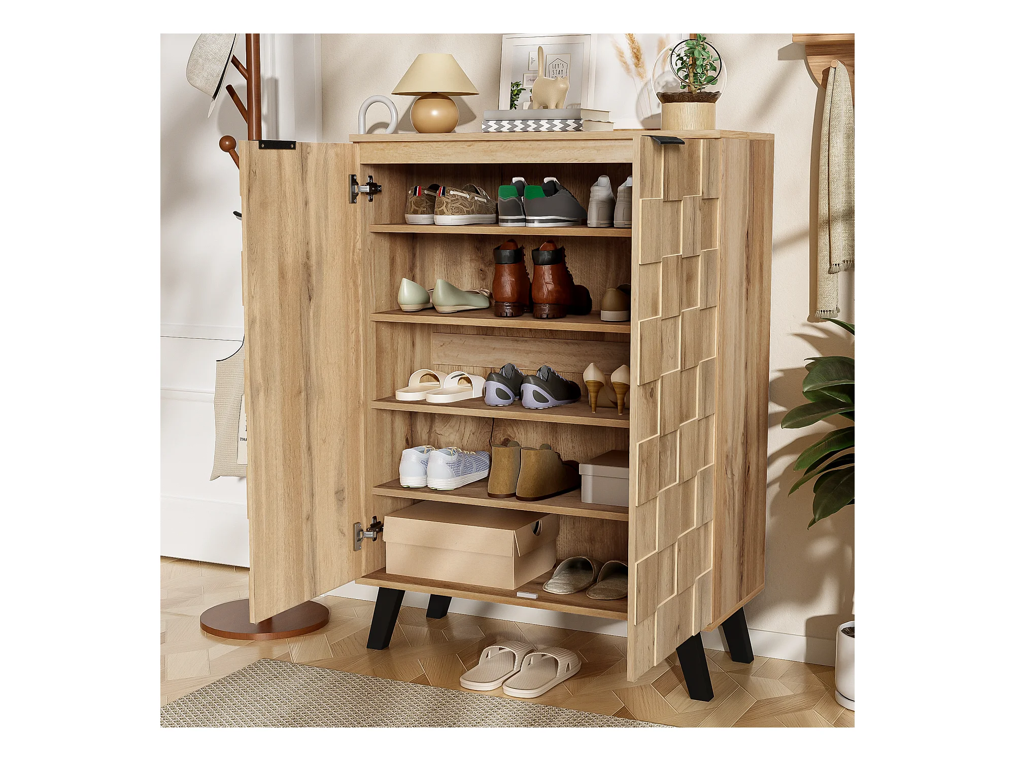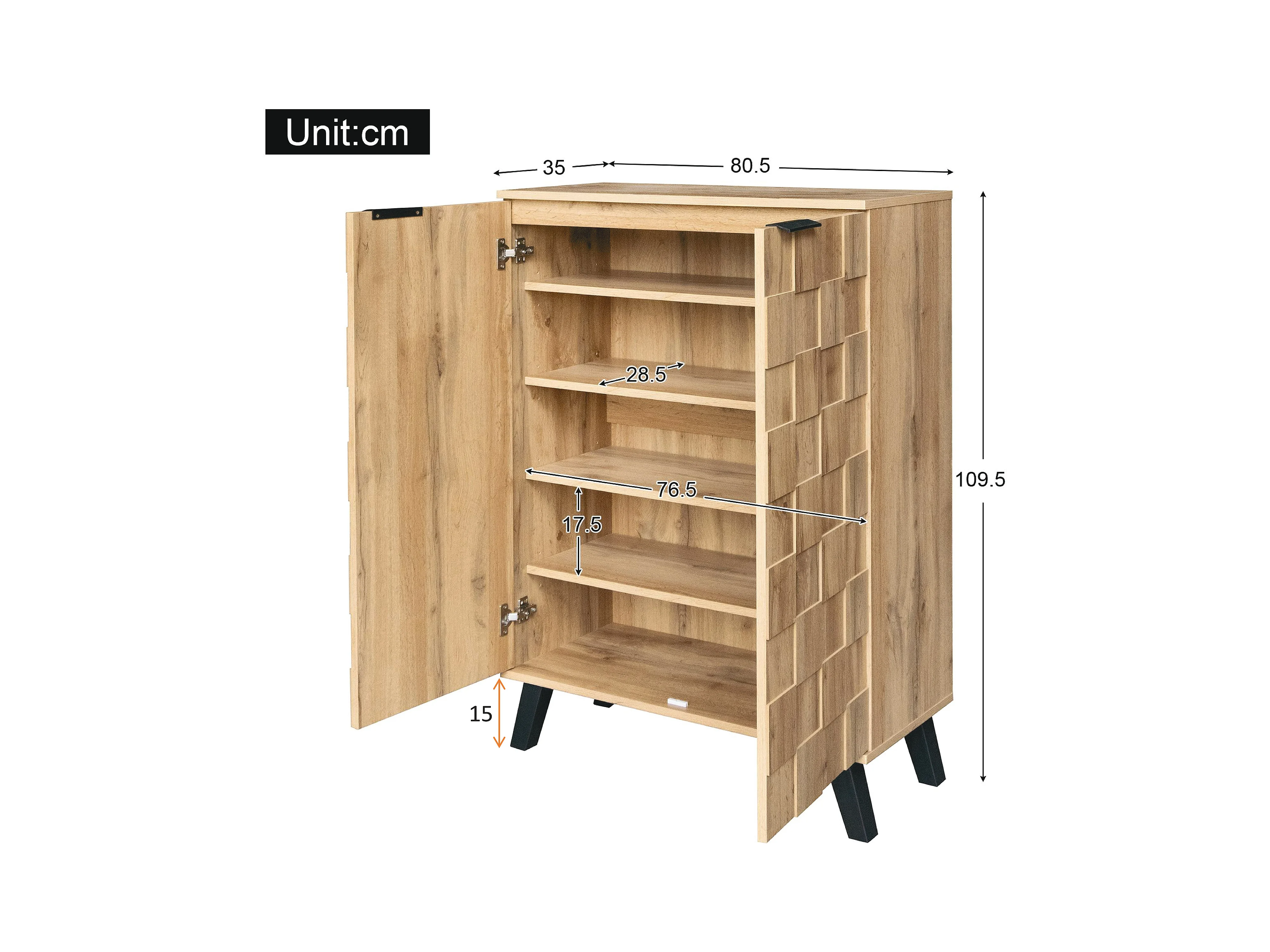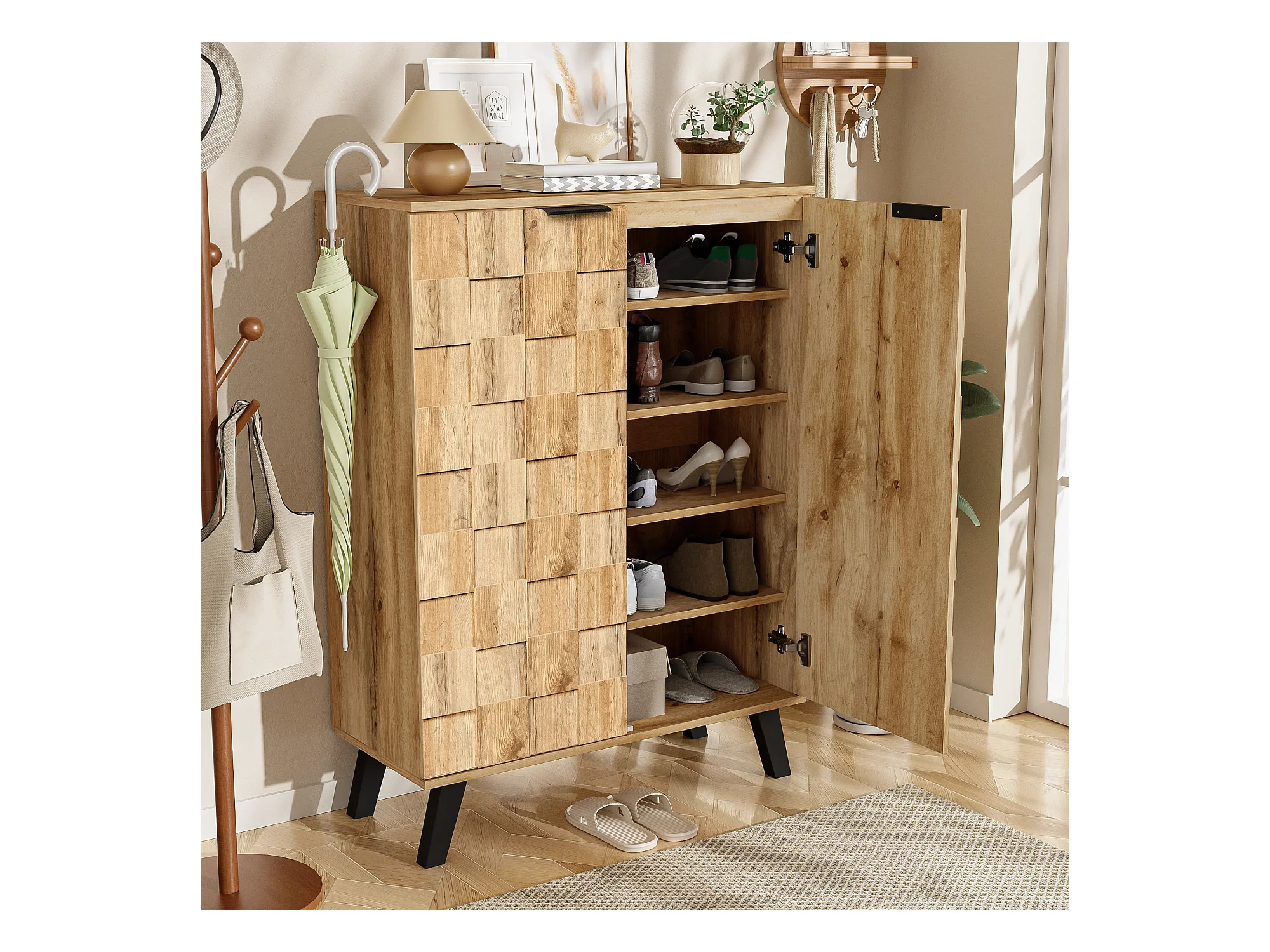 Buffet bas - avec 2 portes et 6 étagères - Naturel