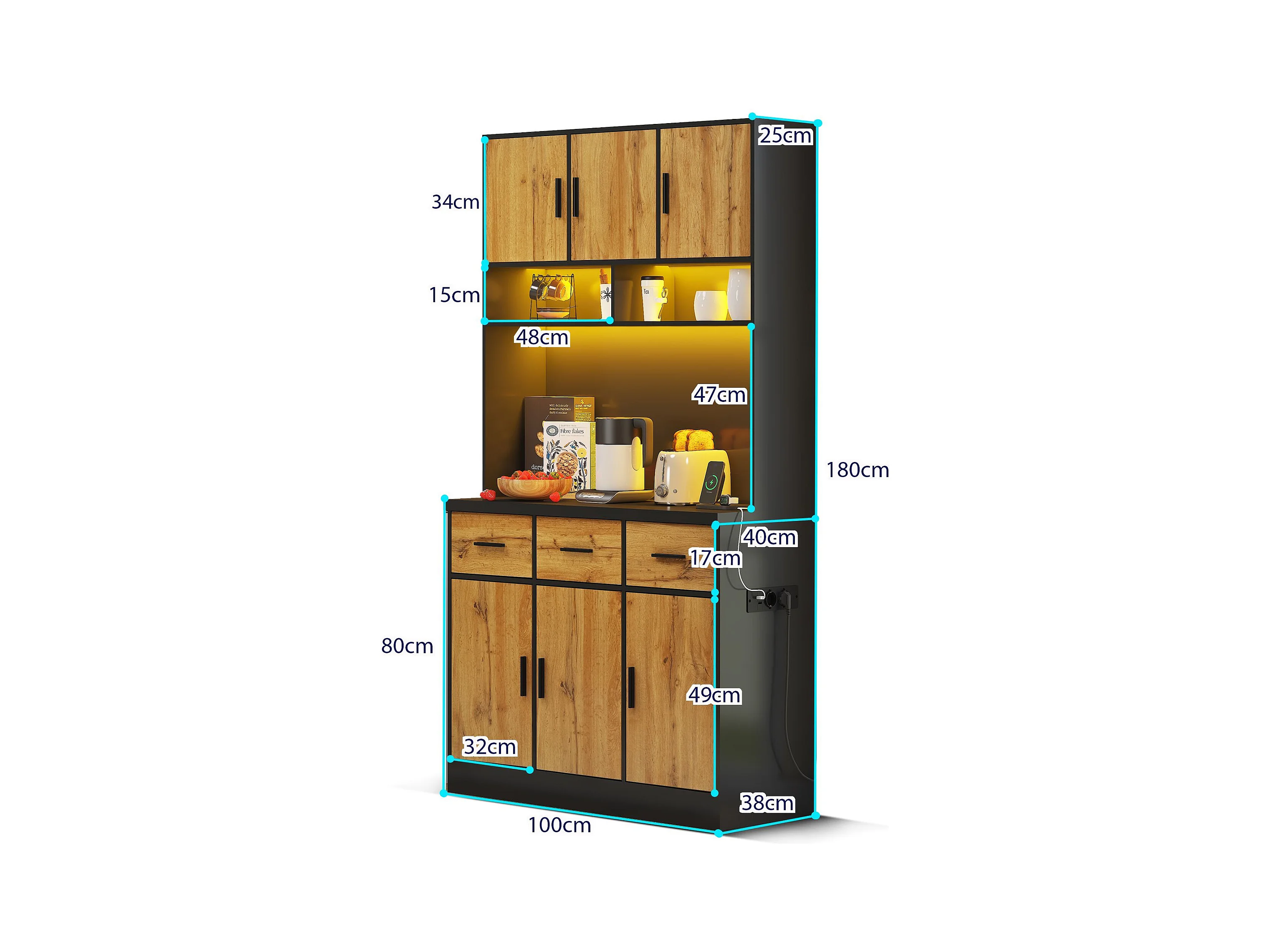 Buffet haut avec éclairage LED, 6 portes en bois et 3 tiroirs de rangement - noir