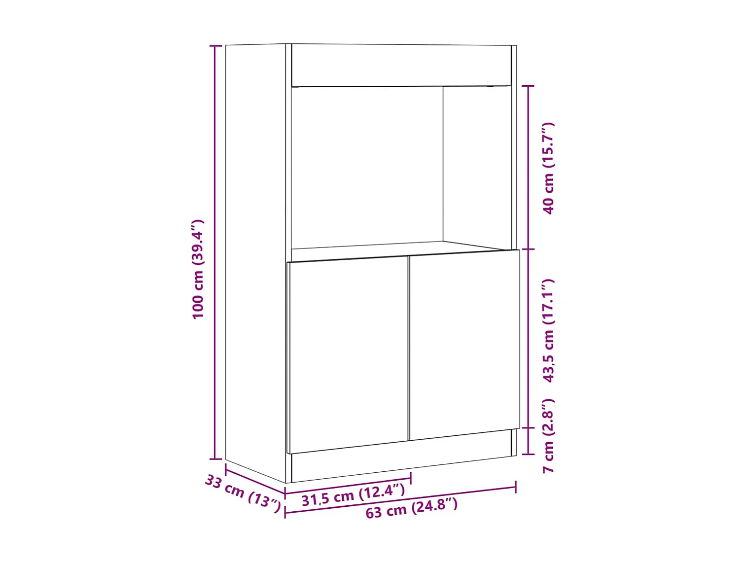 Buffet haut blanc 63x33x100 cm bois d'ingénierie