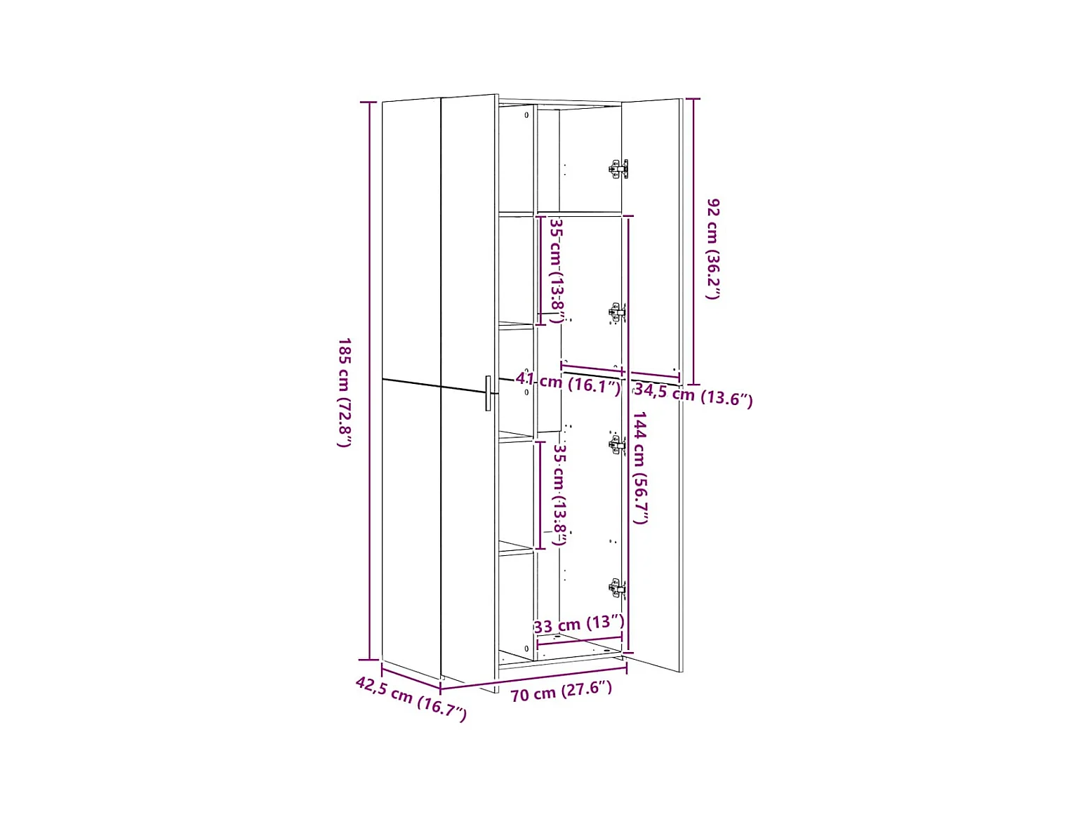 Buffet haut blanc 70x42,5x185 cm bois d'ingénierie