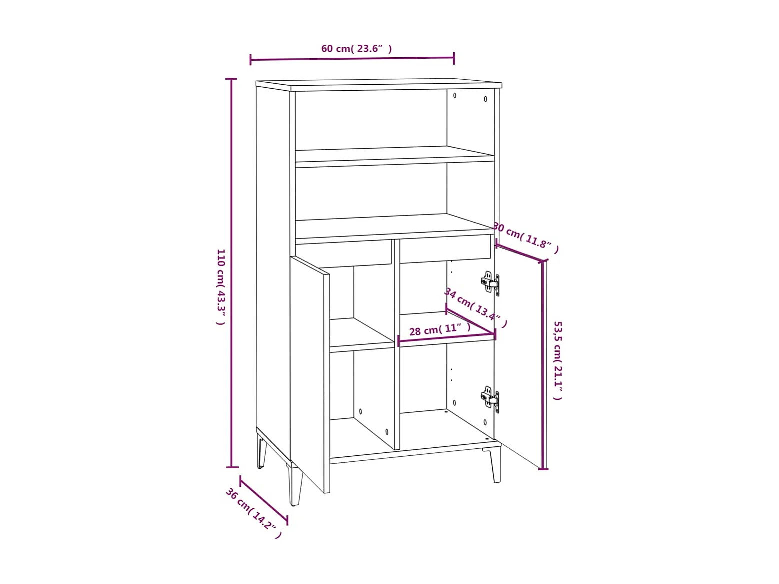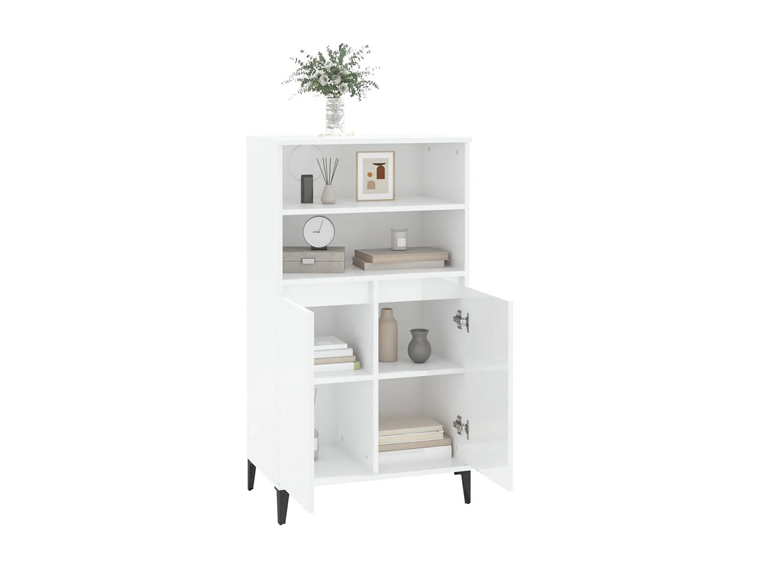Buffet haut Blanc brillant 60x36x110 cm Bois d'ingénierie