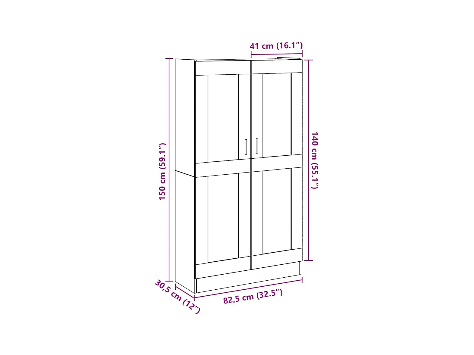 Buffet haut vieux bois 82,5x30,5x150 cm bois d'ingénierie
