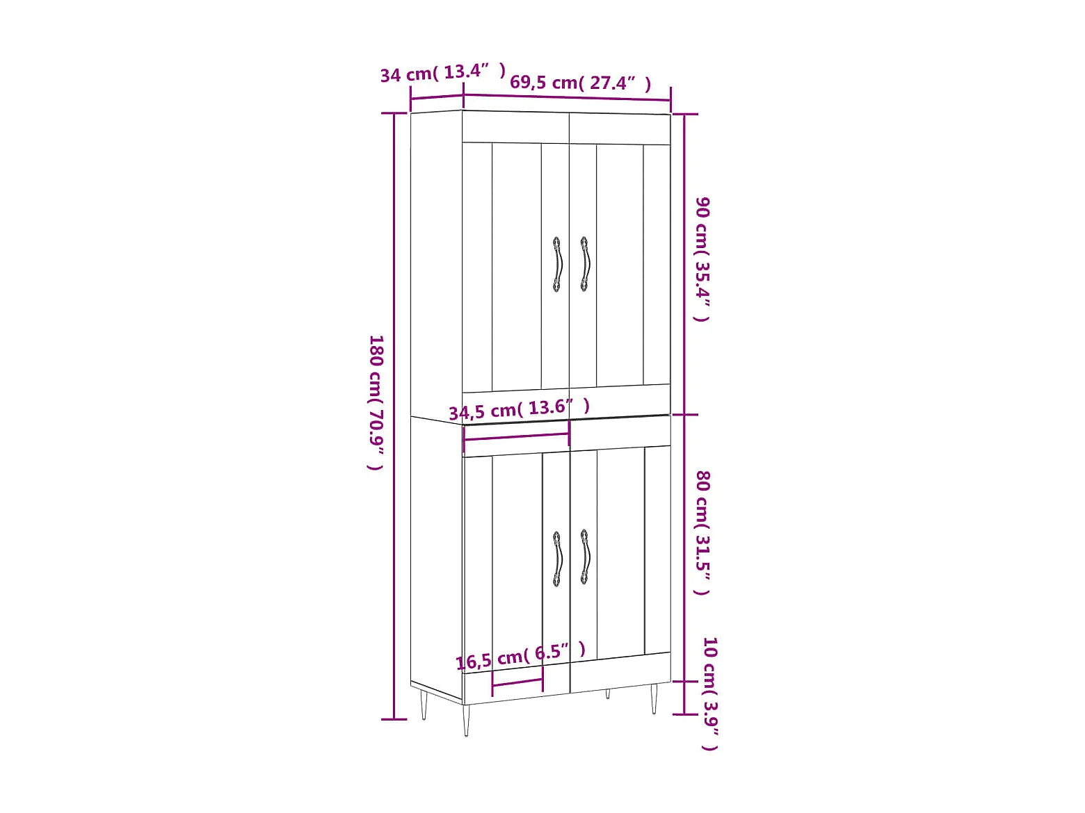 Buffet haut Chêne fumé 69,5x34x180 cm Bois d'ingénierie