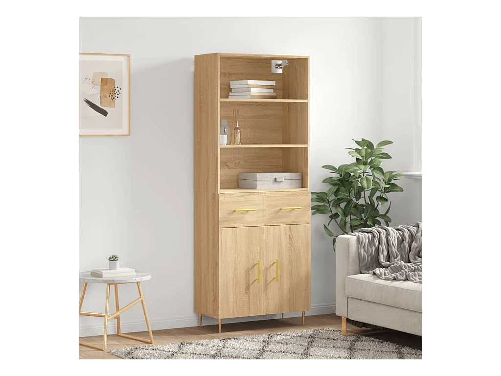 Buffet haut Chêne sonoma 69,5x34x180 cm Bois d'ingénierie QWE79563