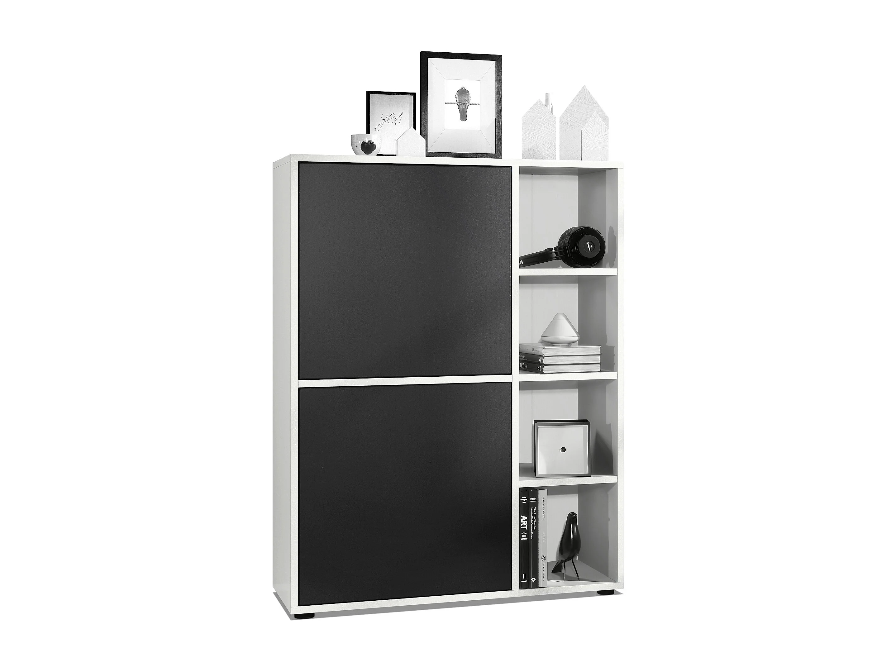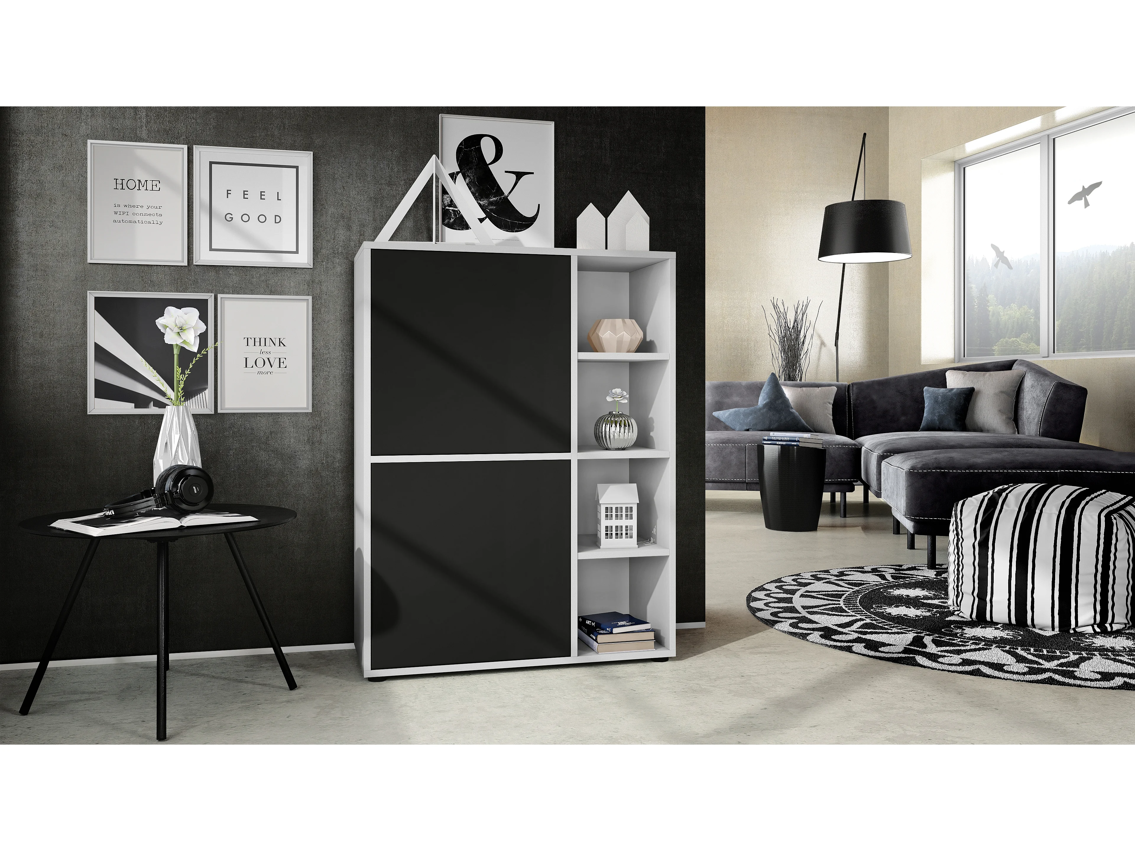 Buffet haut Cuba avec 8 compartiments, caisson en blanc mat / Façades en Noir mat