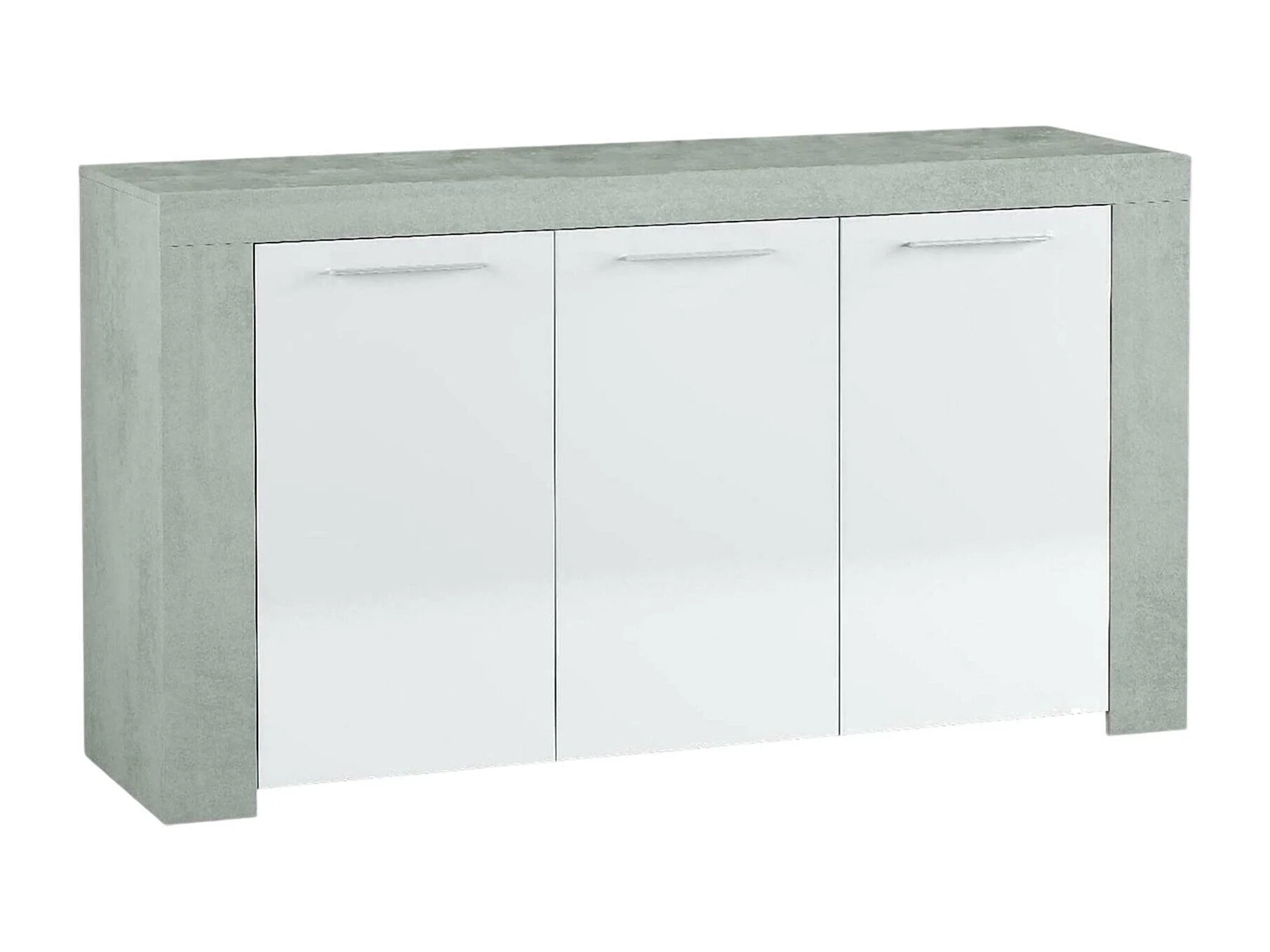 Buffet Dalbiera, Buffet de salon, Meuble TV, Buffet pour salon, Armoire moderne avec 3 portes, 144x42h80 cm, Ciment et Blanc
