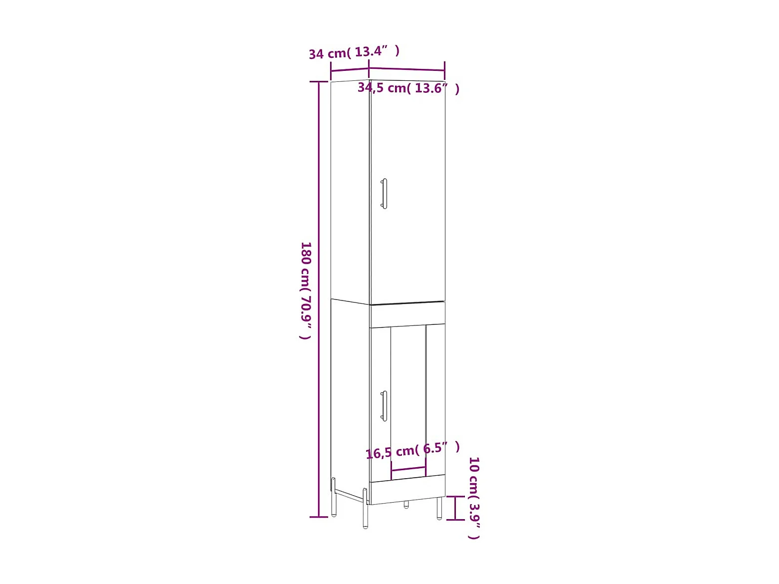 Buffet haut Gris béton 34,5x34x180 cm Bois d'ingénierie