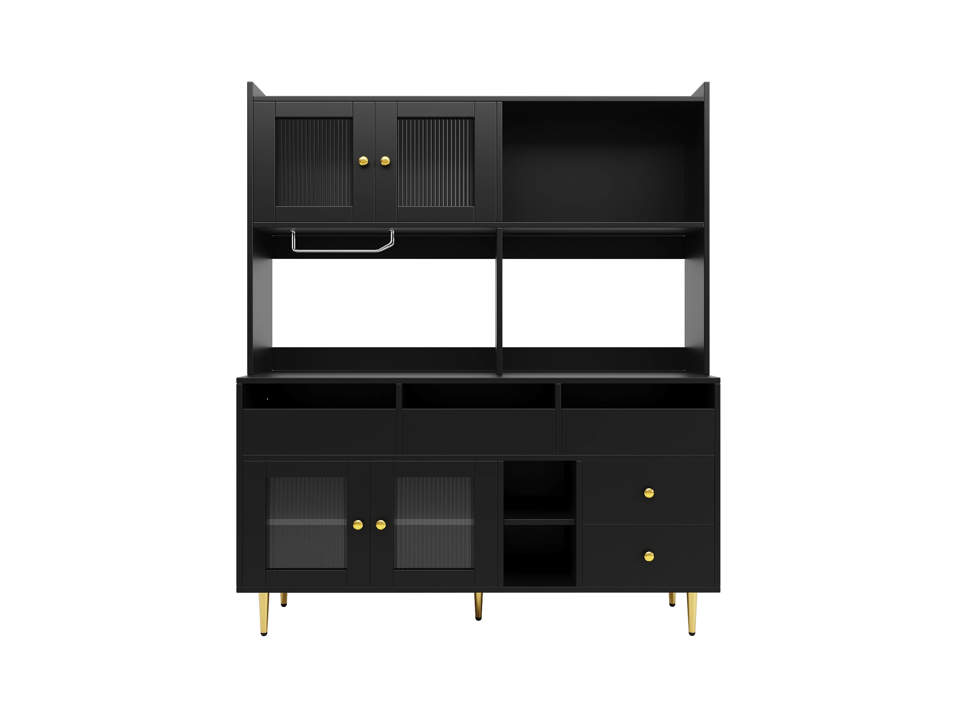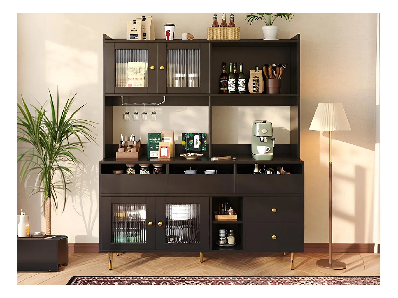 Buffet haut moderne - en MDF - rangement à plusieurs niveaux - Noir