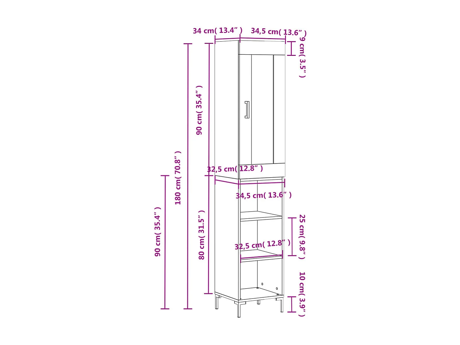Buffet haut Noir 34,5x34x180 cm Bois d'ingénierie