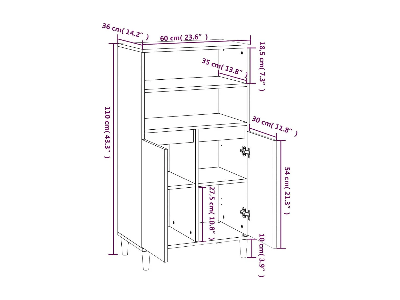 Buffet haut Noir 60x36x110 cm Bois d'ingénierie
