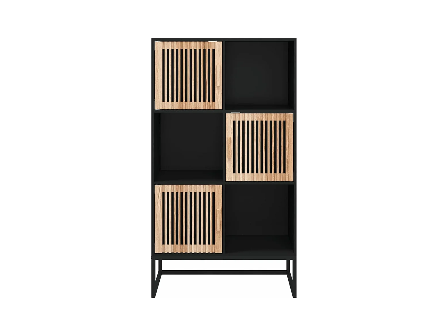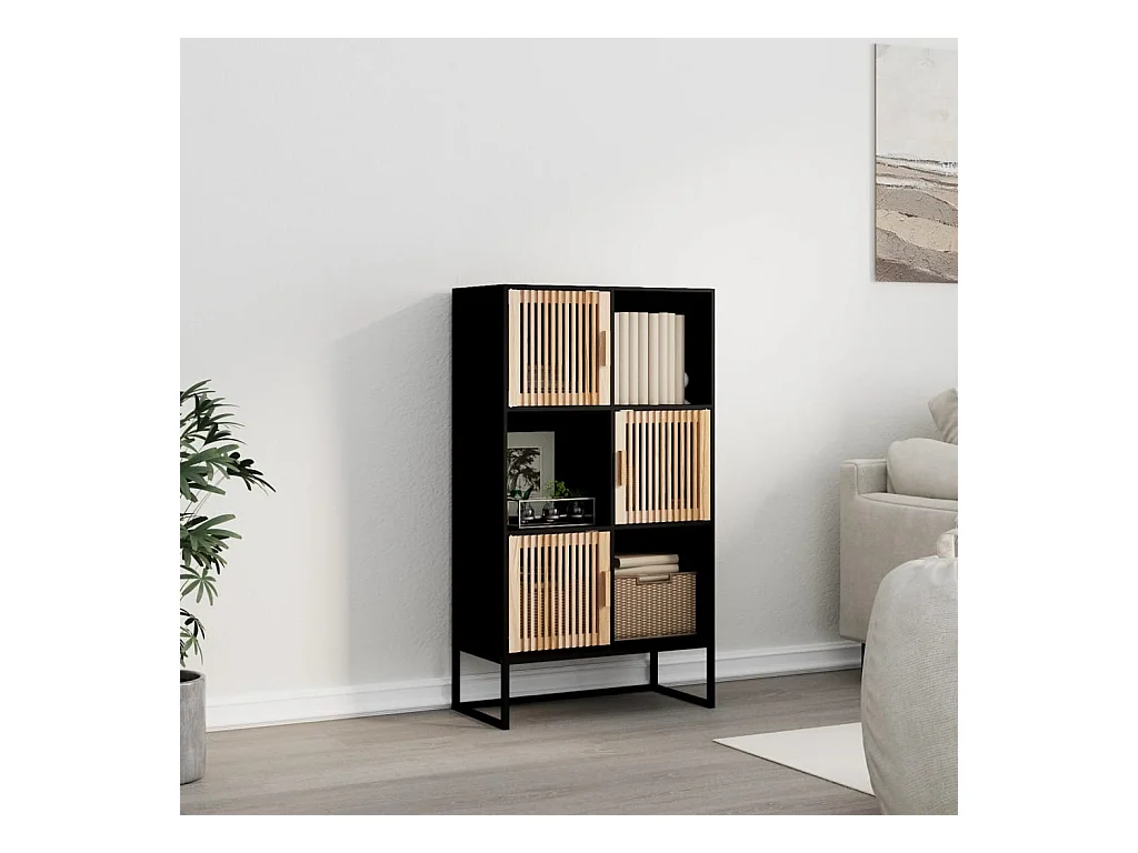 Buffet haut noir 70x35x125 bois d'ingénierie