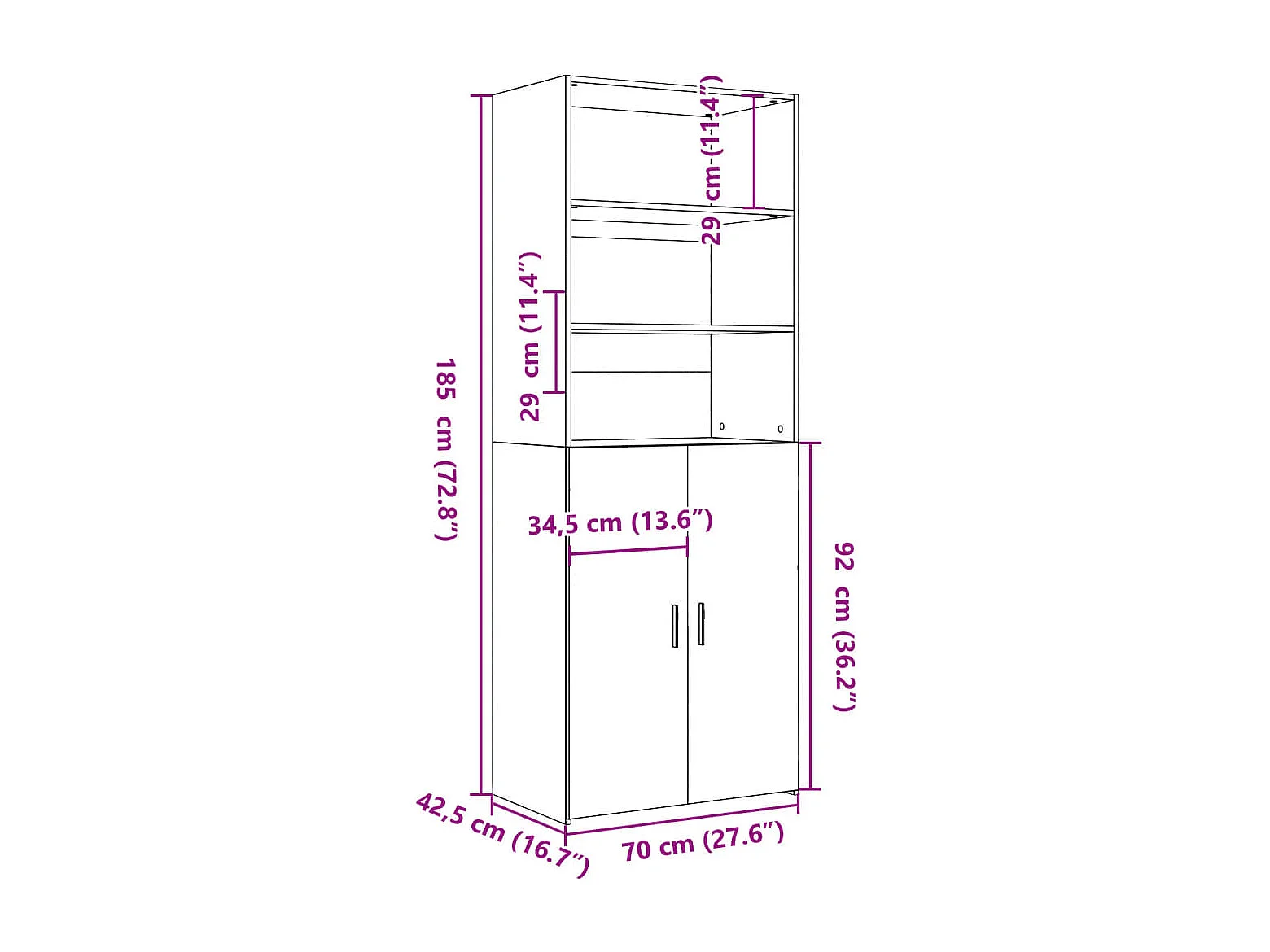 Buffet haut sonoma gris 70x42,5x185 cm bois d'ingénierie