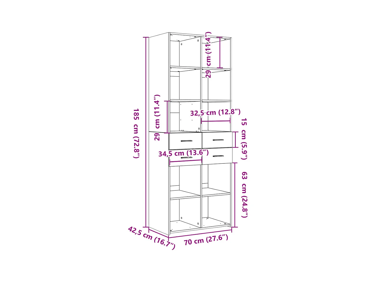 Buffet haut sonoma gris 70x42,5x185 cm bois d'ingénierie