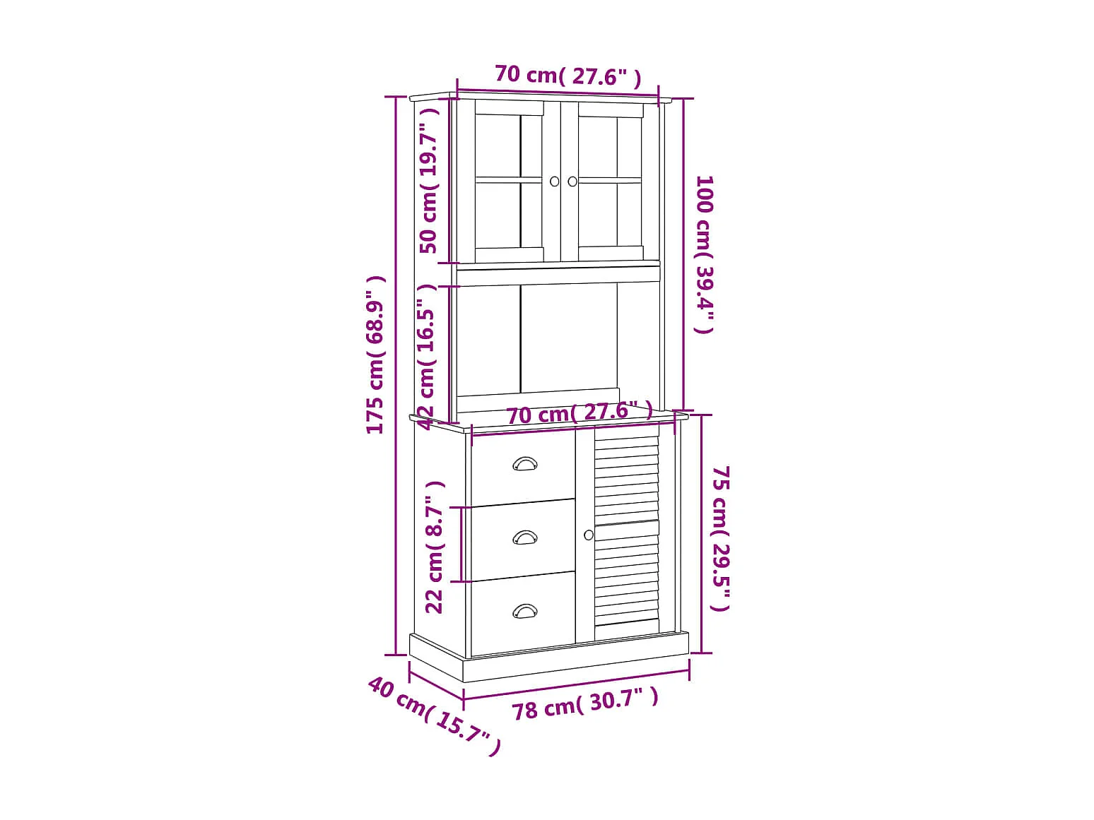 Buffet haut VIGO blanc 78x40x175 cm bois massif de pin