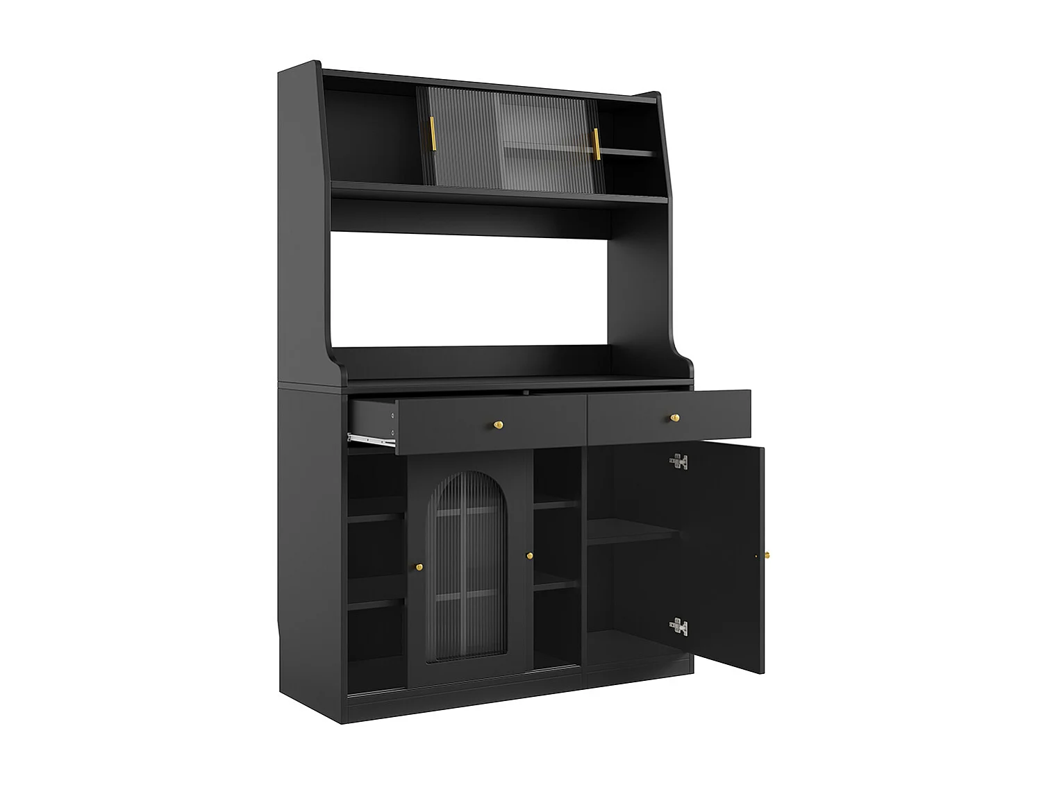 Buffet haut vitrine étagères réglables armoire salle à manger 2 tiroirs éclairage LED couleurs lumière variables noir