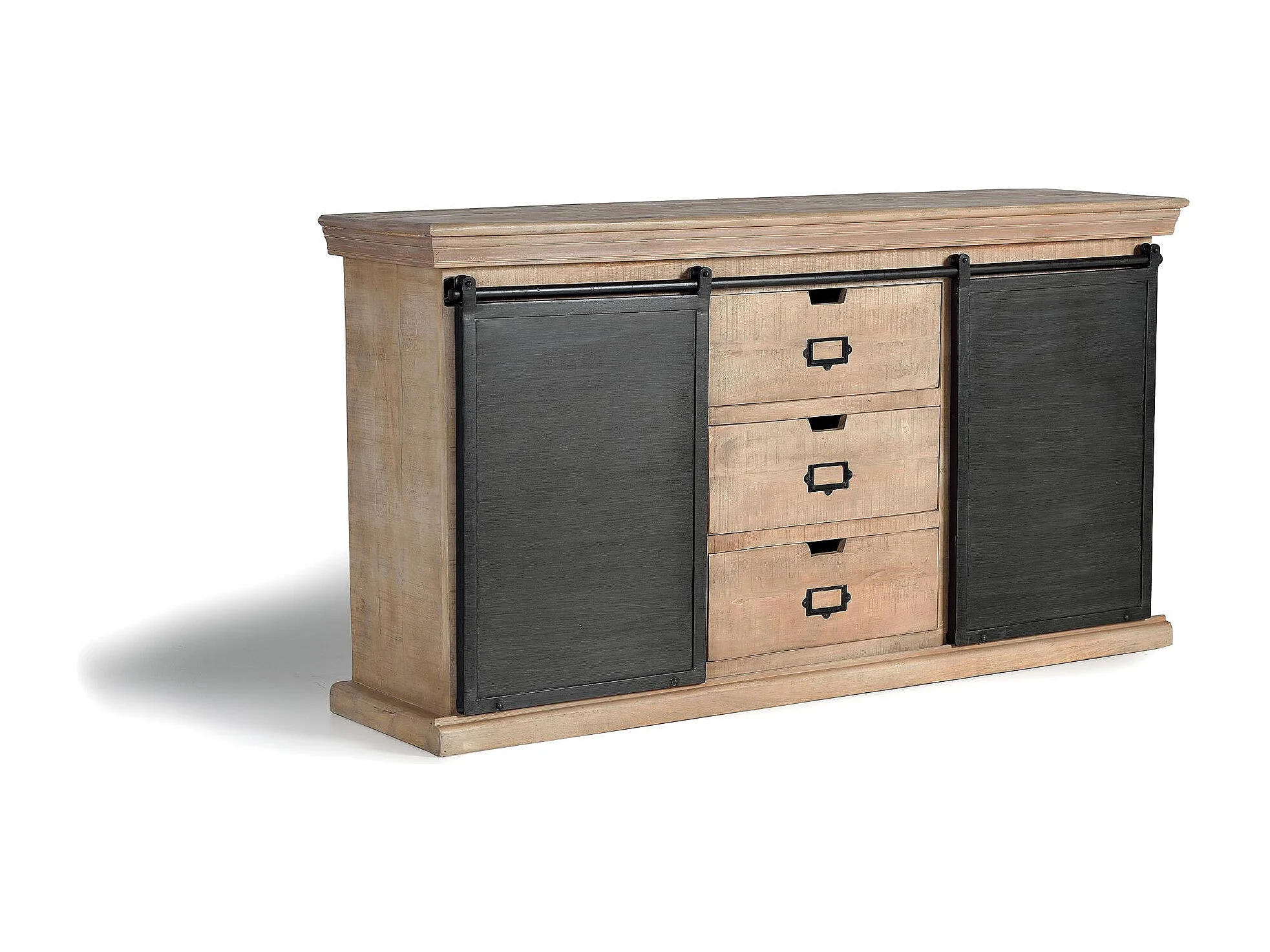 Buffet industriel en manguier et détails en métal noir