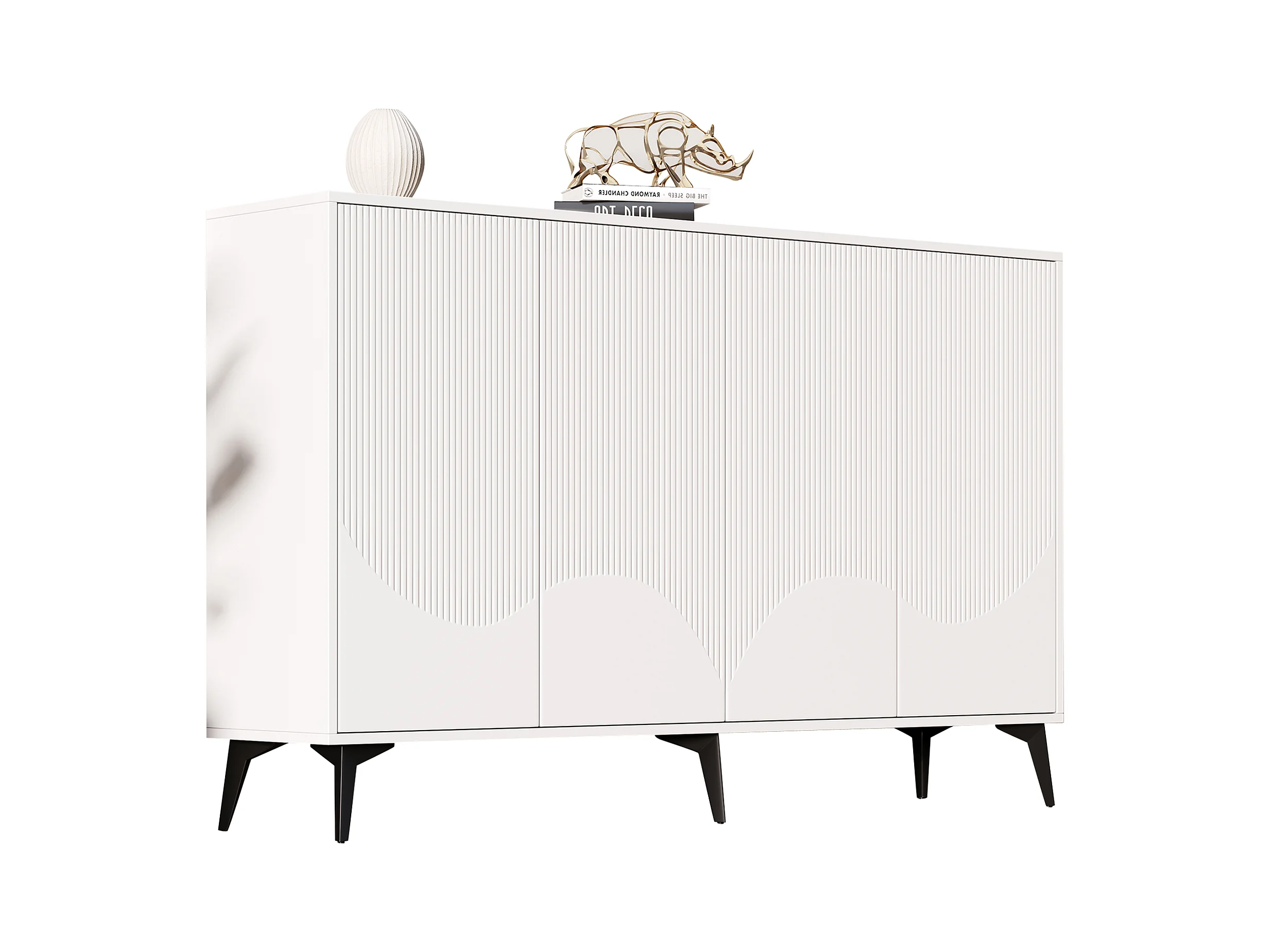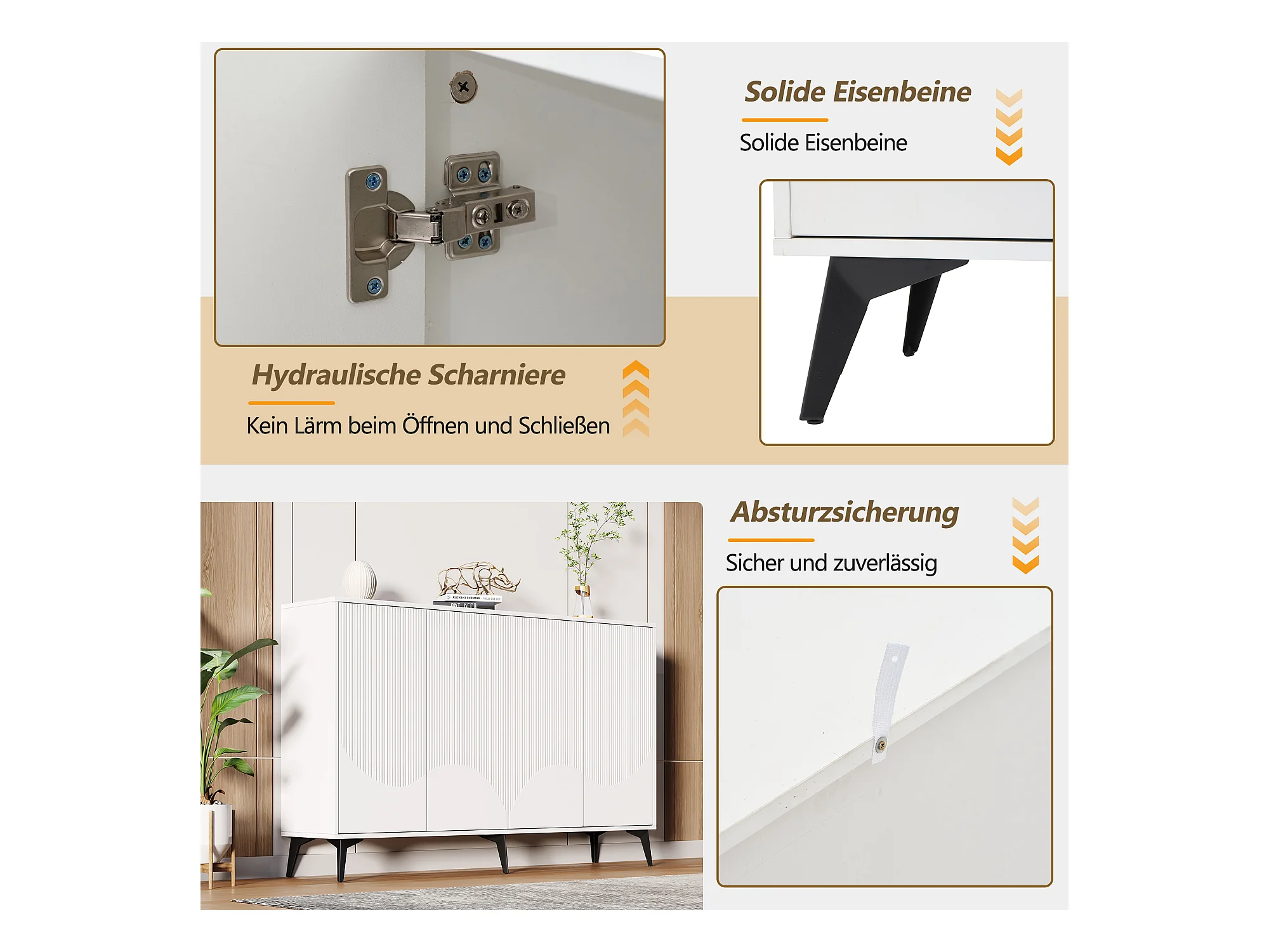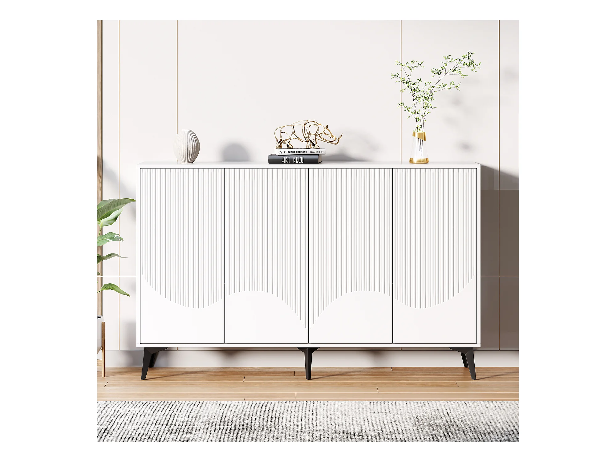 Buffet LED avec 4 portes, 2 tiroirs, MDF, Blanc (160x35x100 cm)