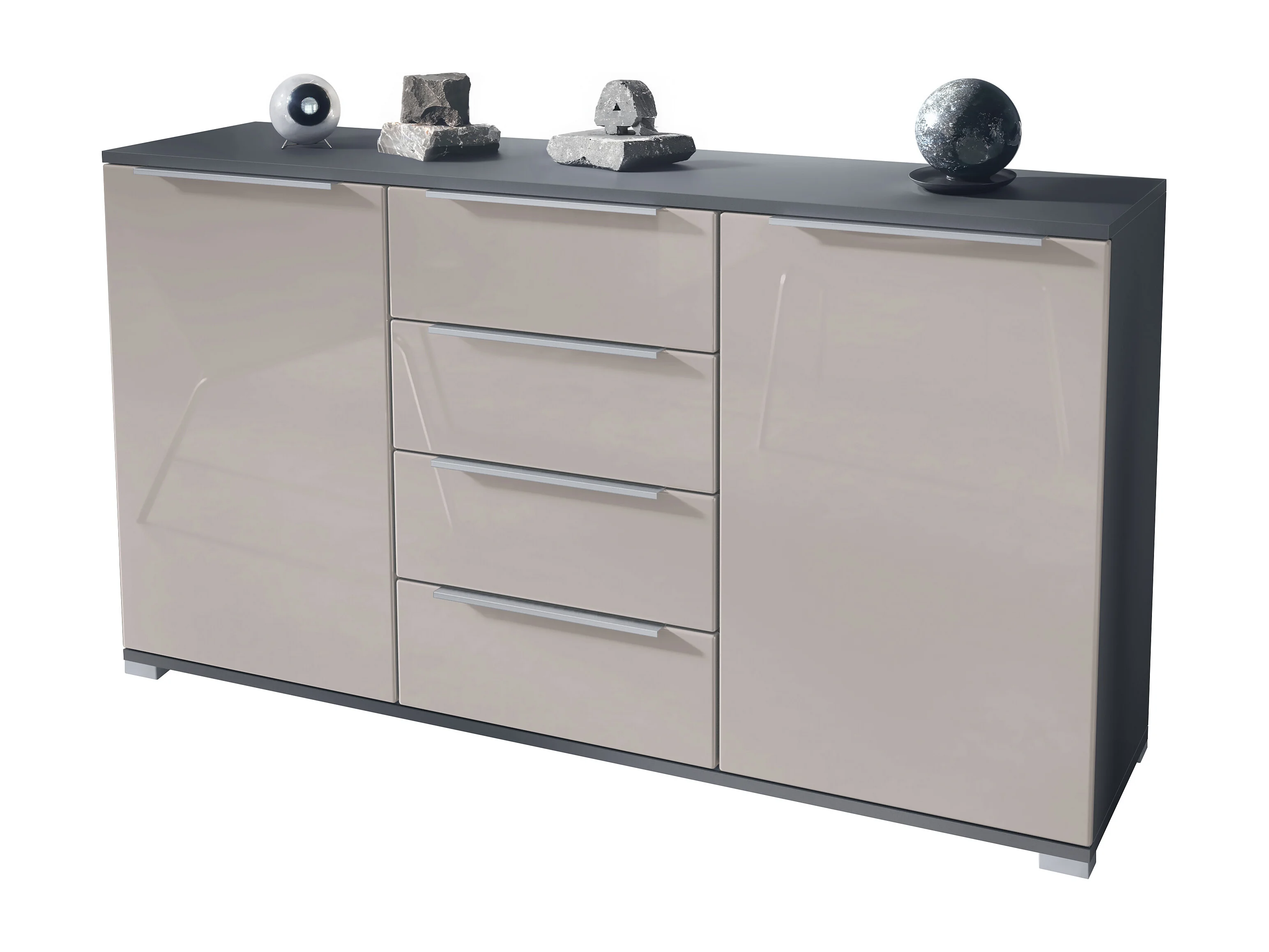 Buffet Linio V1, Enfilade avec 2 portes et 4 tiroirs, anthracite mat / gris sable haute brillance (138,5 x 75,5 x 35 cm)