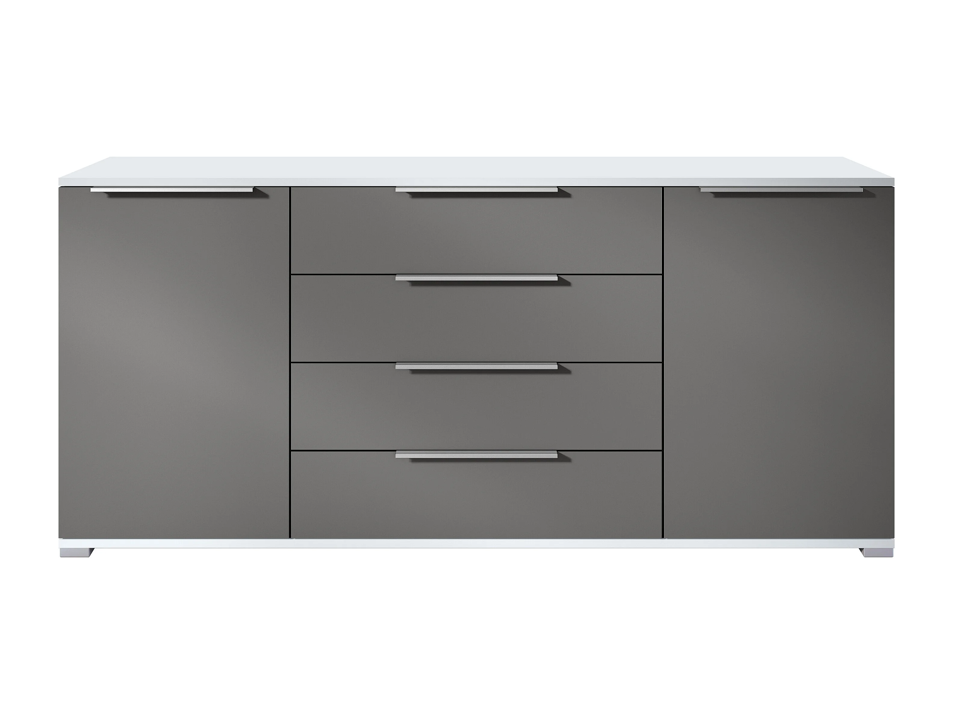 Buffet Linio V2 – Commode moderne avec 2 portes et 4 tiroirs, blanc mat/anthracite mat, 166,5 x 75,5 x 35 cm (L x H x P) – Meuble de rangement bahut