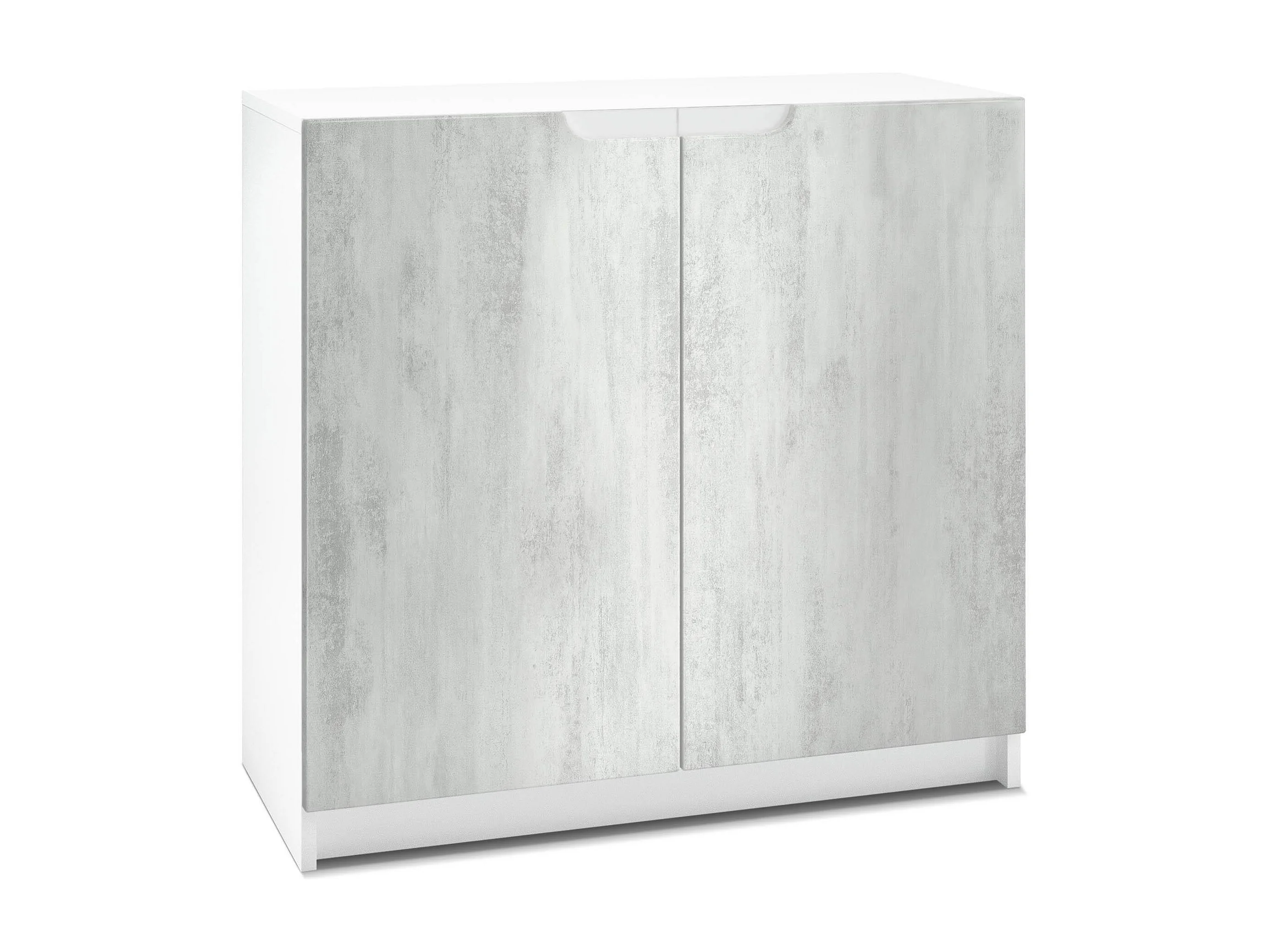 Buffet Logan, Commode avec 2 portes, blanc mat/aspect béton oxyde (82 x 78 x 37 cm)