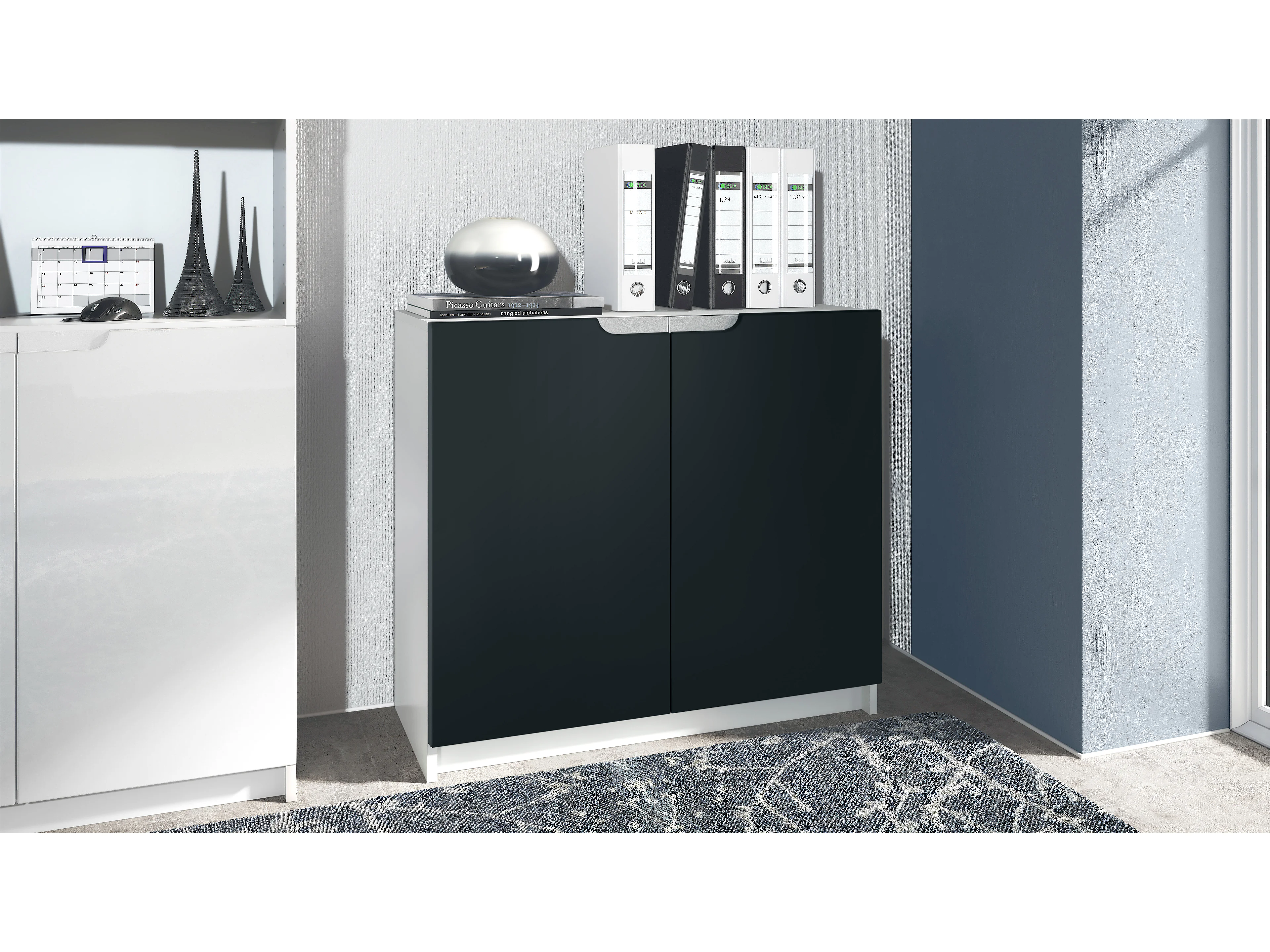 Buffet Logan, Commode avec 2 portes, blanc mat/noir mat (82 x 78 x 37 cm)