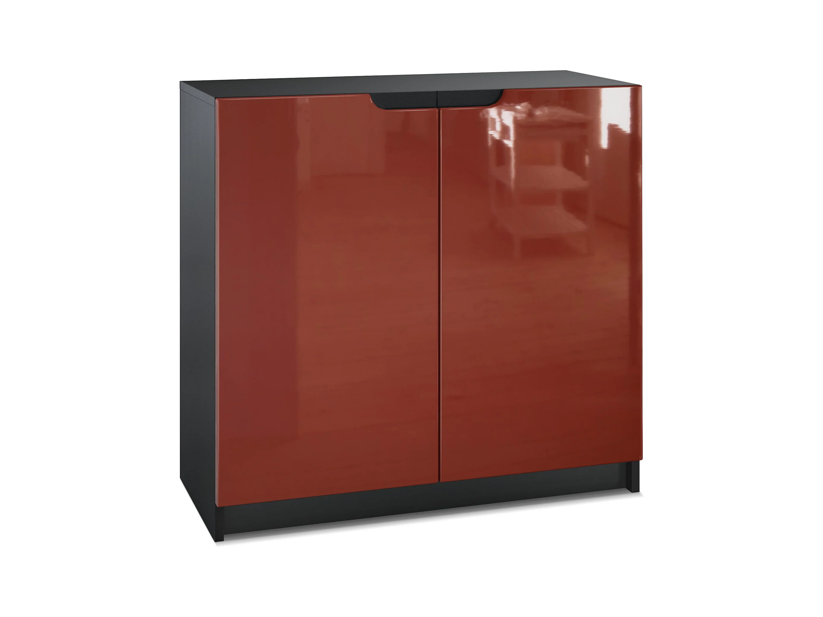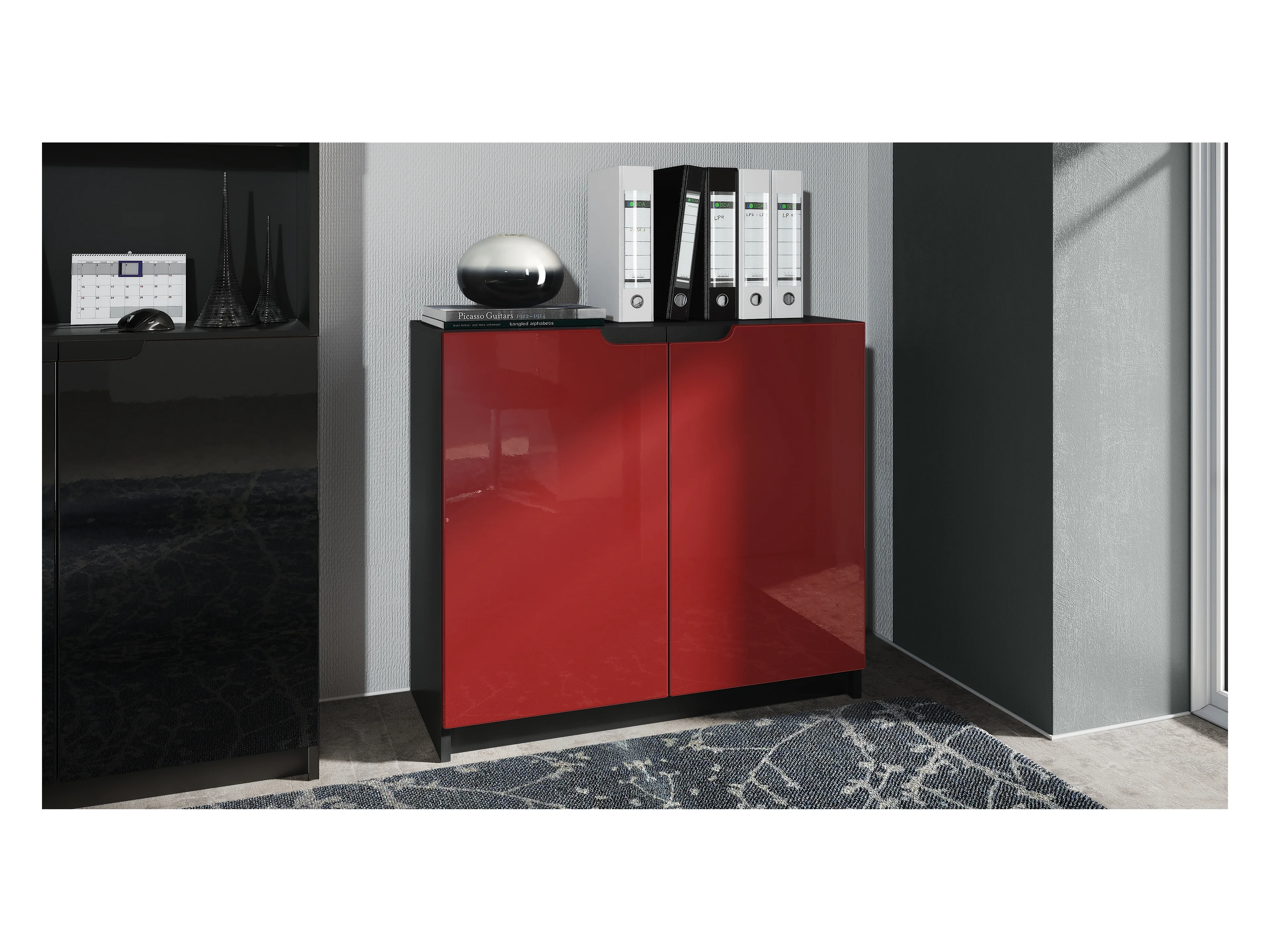 Buffet Logan, Commode avec 2 portes, noir mat/bordeaux haute brillance (82 x 78 x 37 cm)