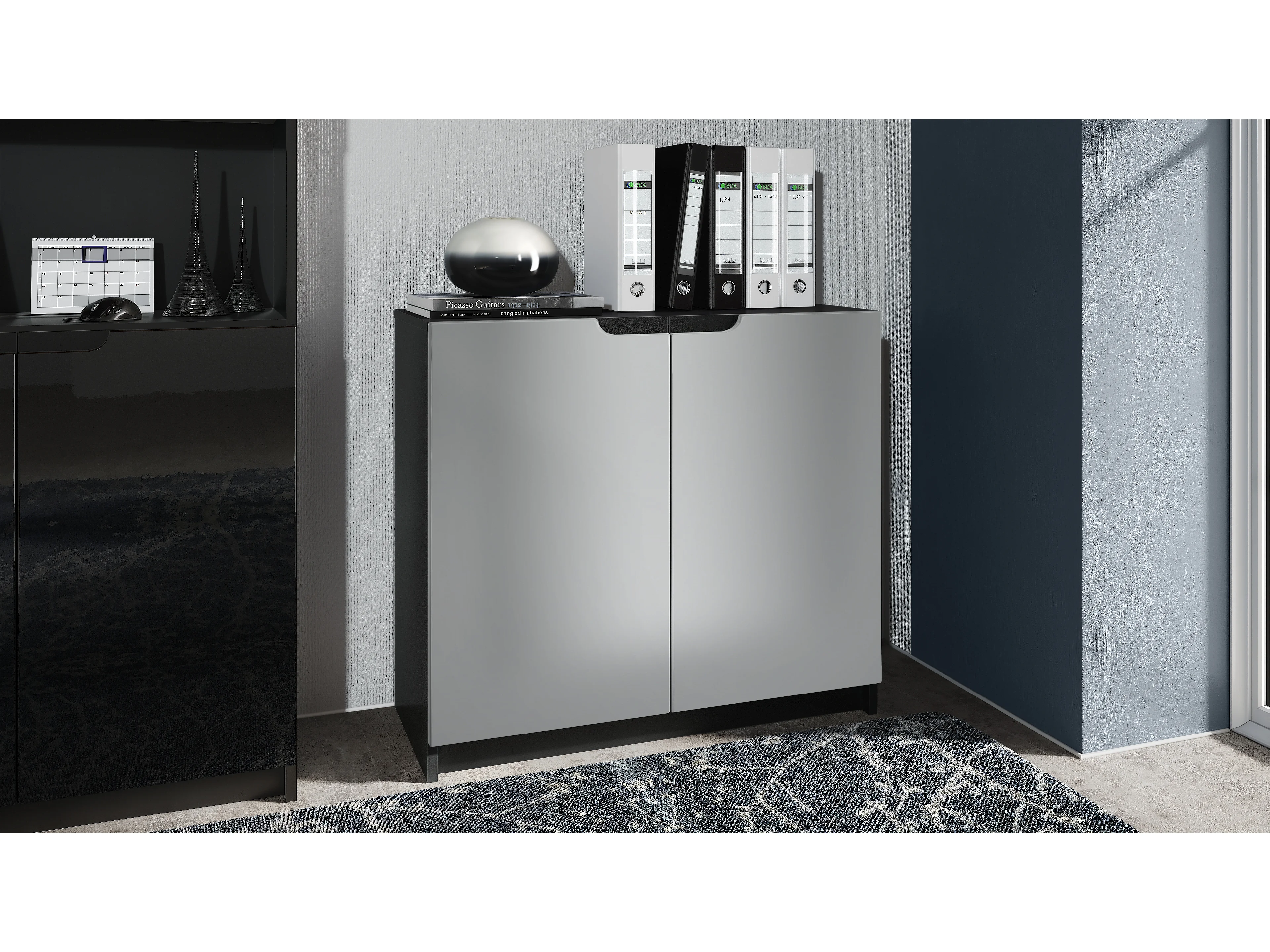 Buffet Logan, Commode avec 2 portes, noir mat/gris clair satiné mat (82 x 78 x 37 cm)