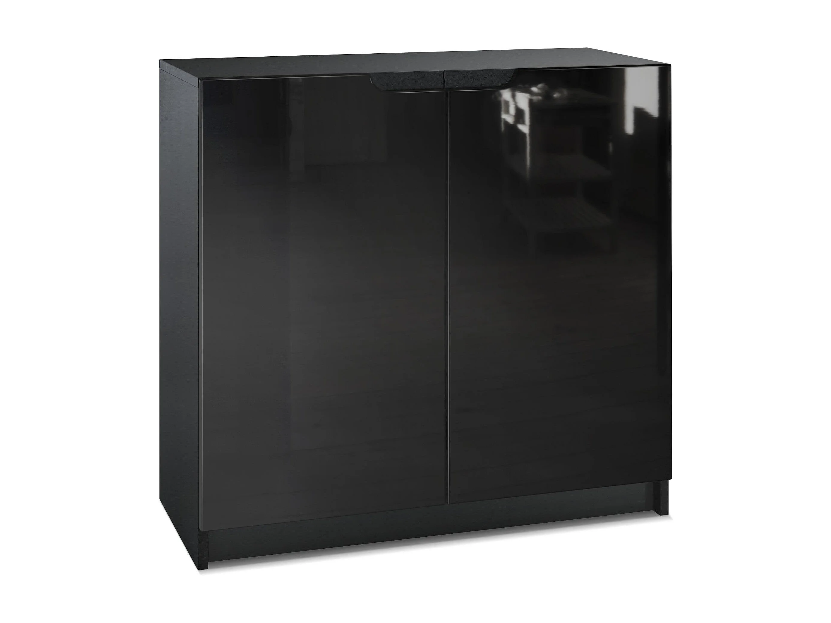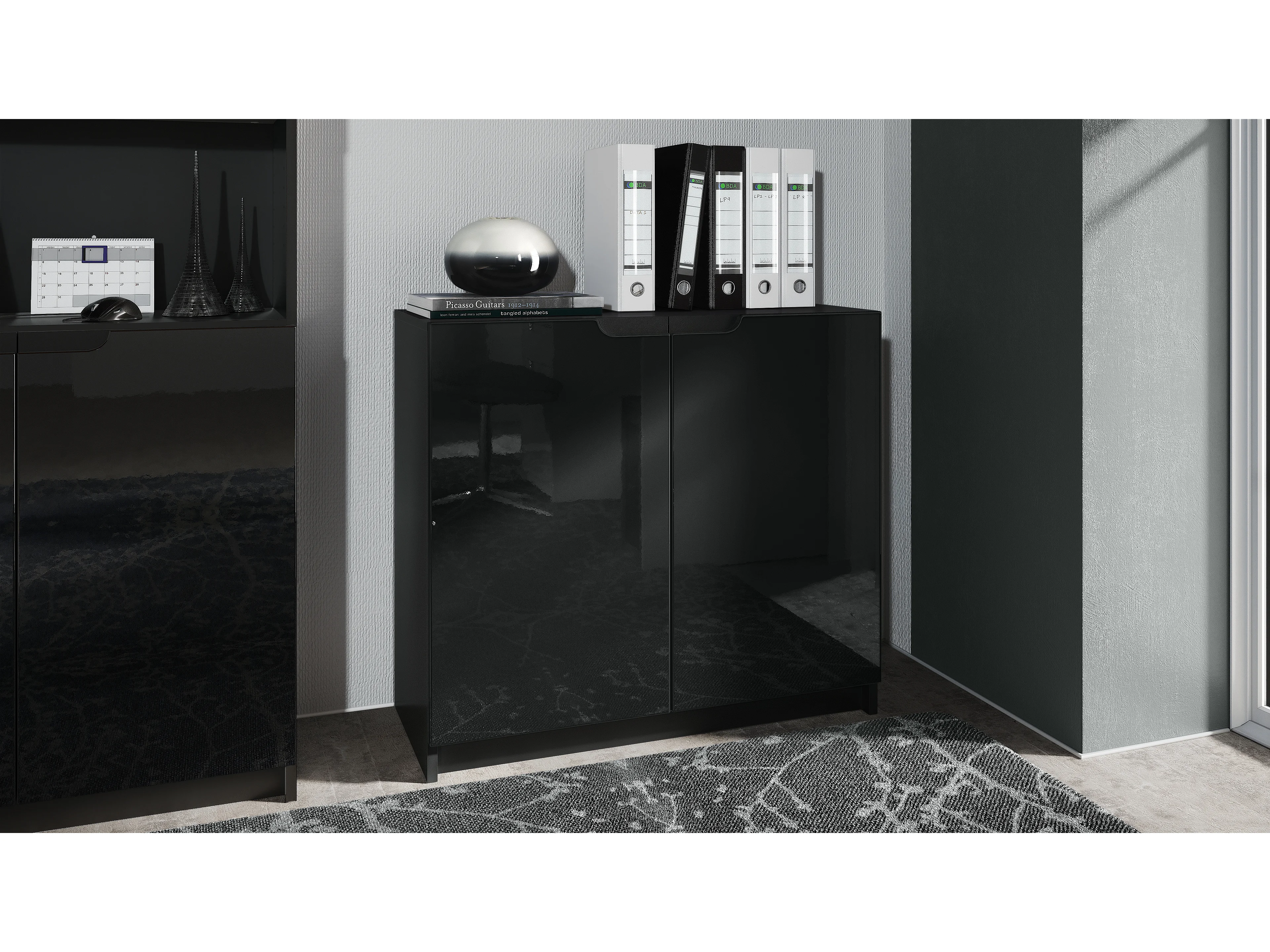 Buffet Logan, Commode avec 2 portes, noir mat/noir haute brillance (82 x 78 x 37 cm)