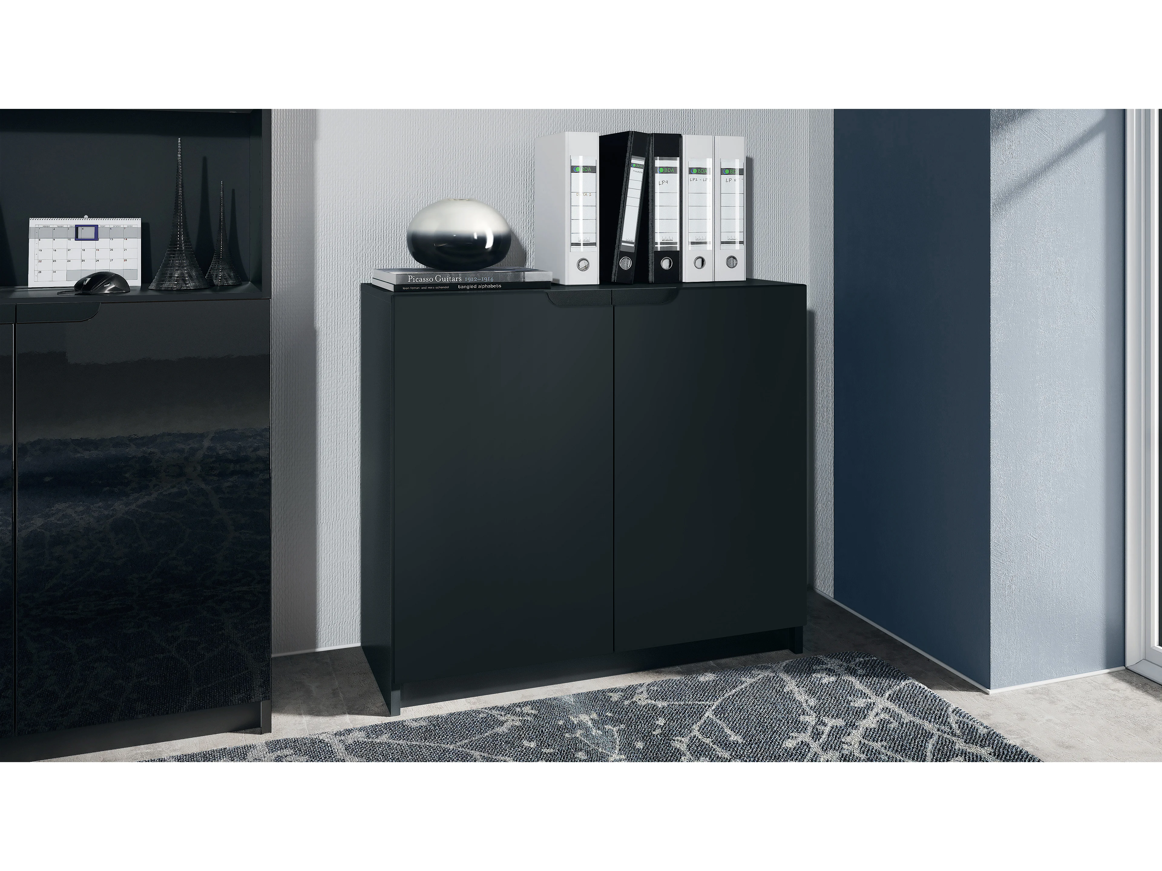 Buffet Logan, Commode avec 2 portes, noir mat/noir mat (82 x 78 x 37 cm)