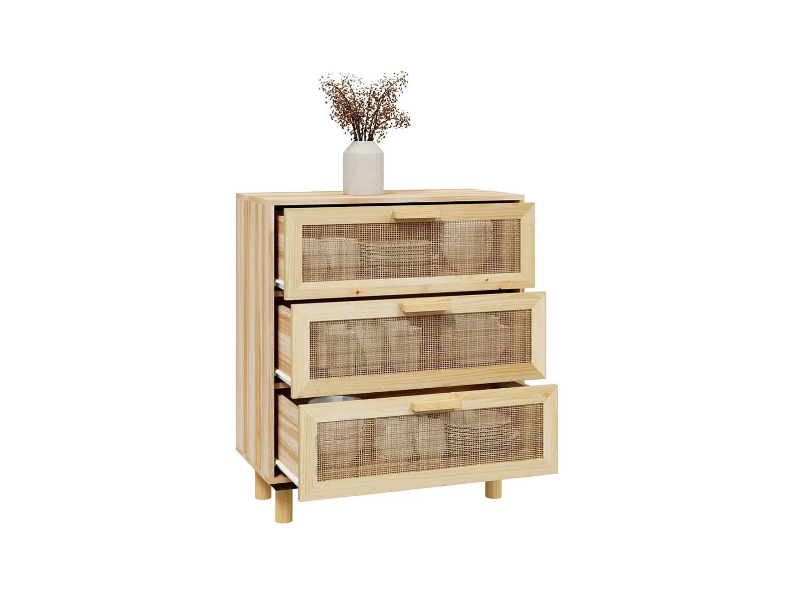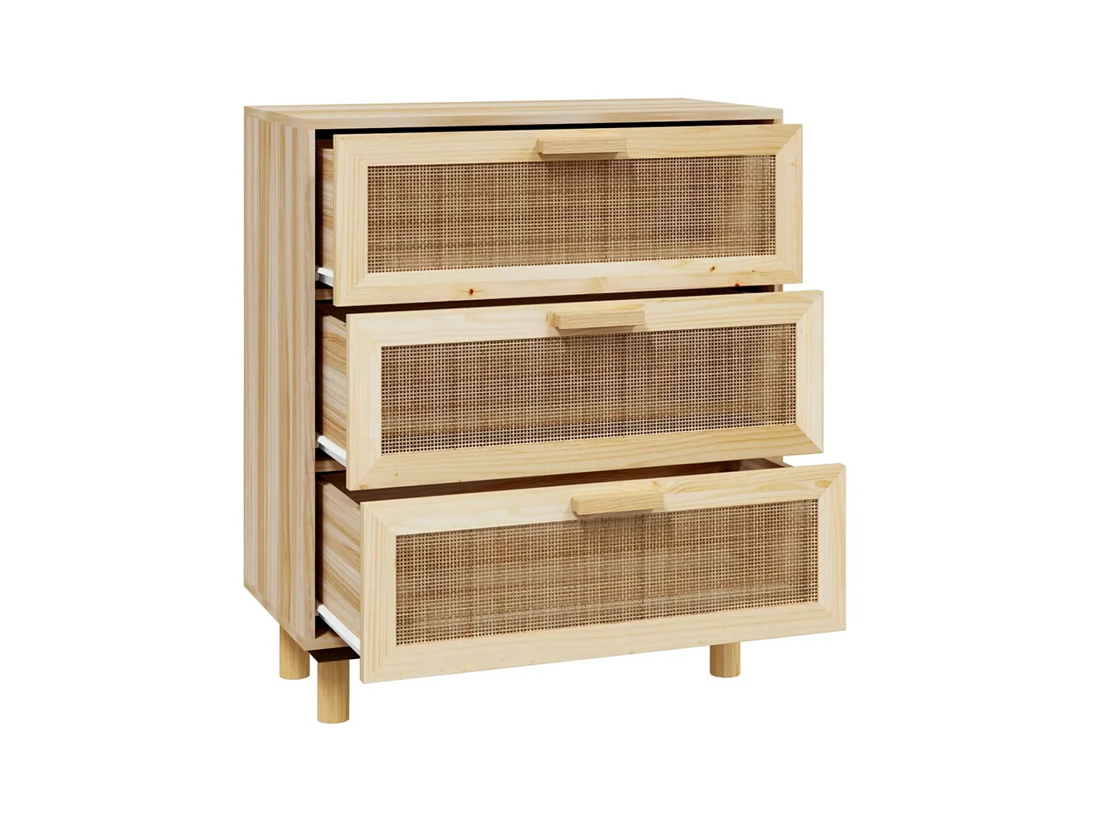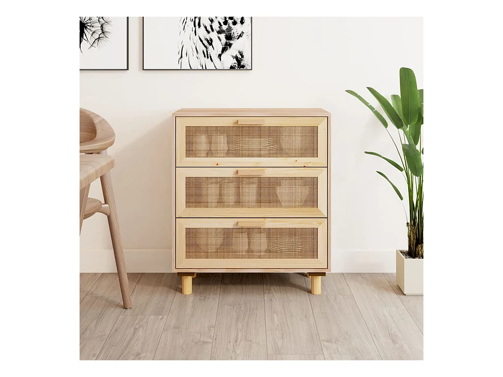 Buffet Marron 60x30x70 cm Bois de pin massif et rotin naturel QWE52842