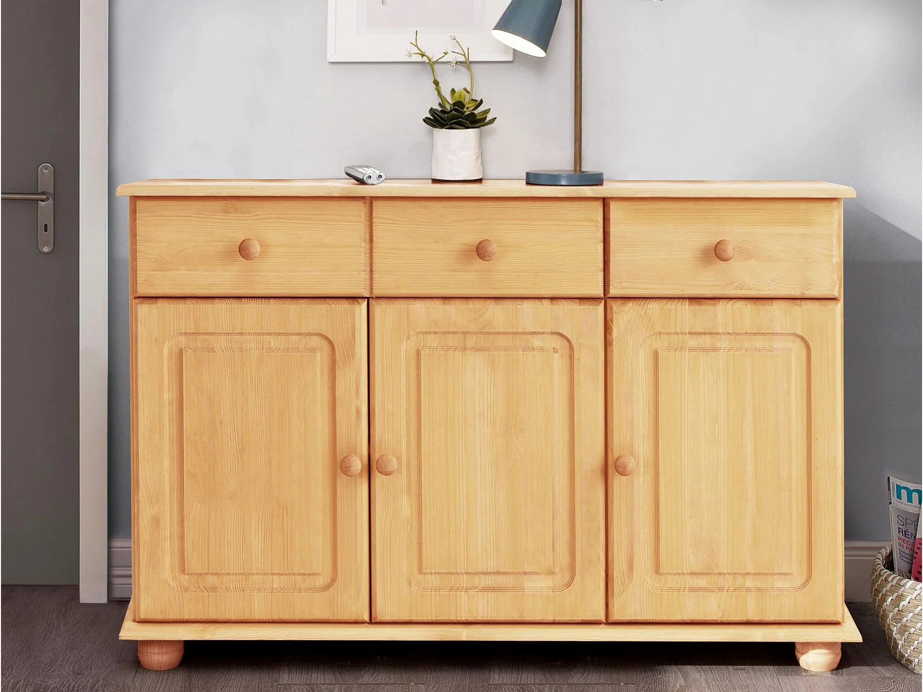 Mette|Buffet avec 3 portes et 2 tiroirs en pin naturel