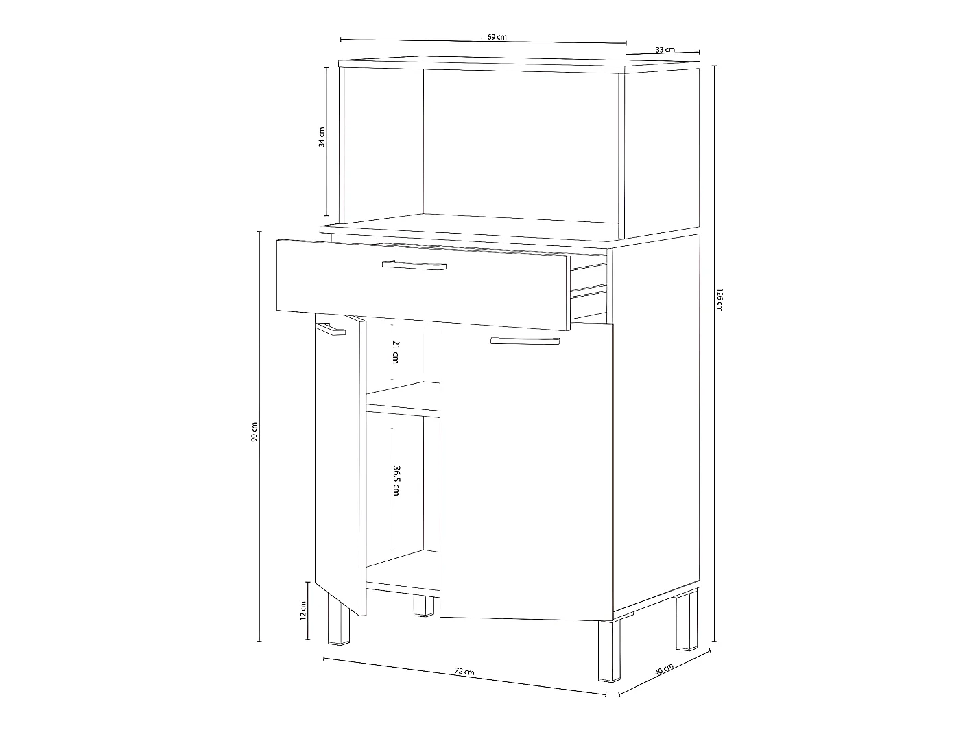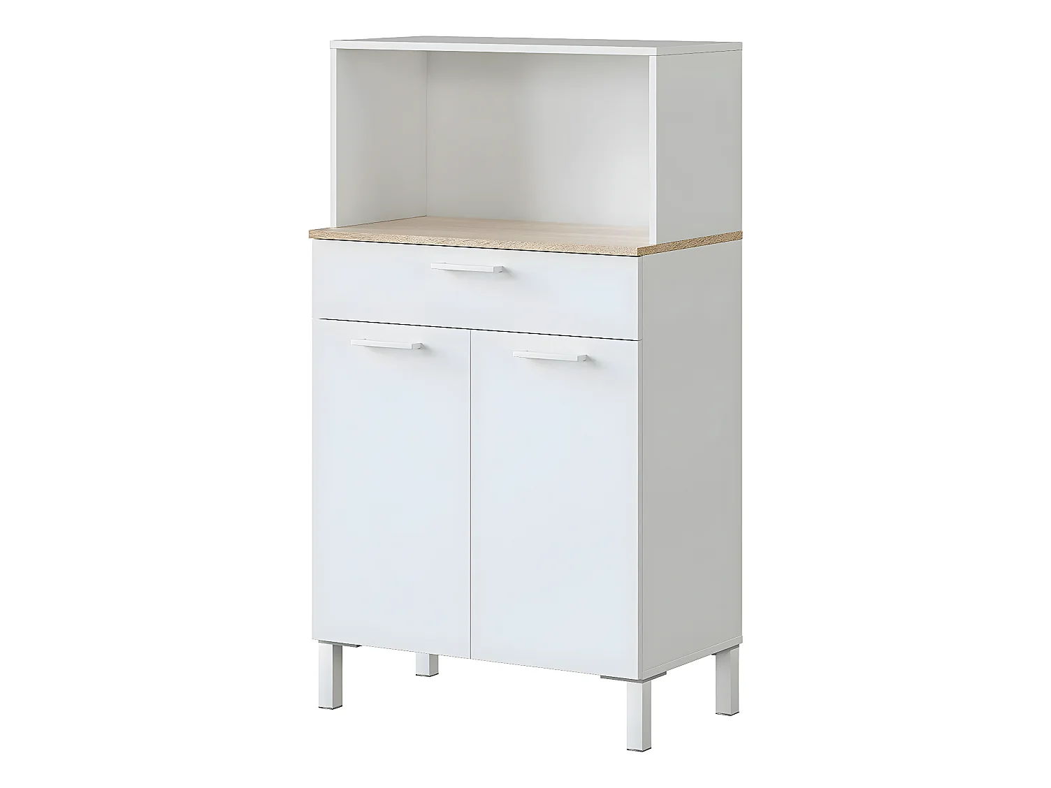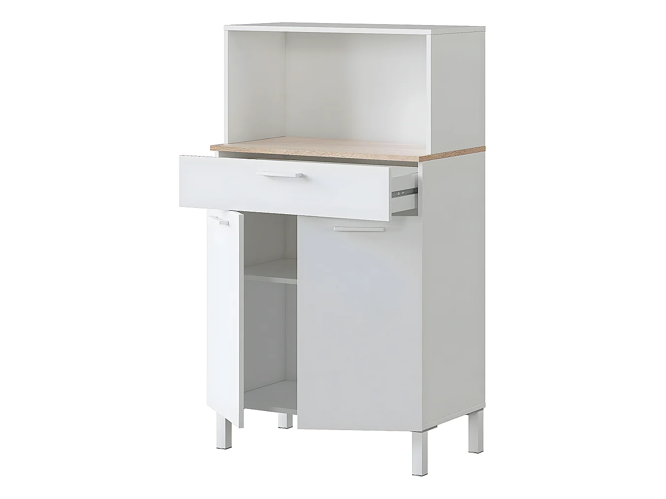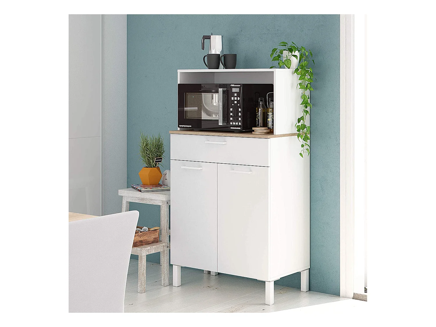 Buffet meuble cuisine 2 portes + tiroir coloris blanc artic / chêne canadien - Hauteur 126 cm x Longueur 72 cm x Profondeur 40 cm