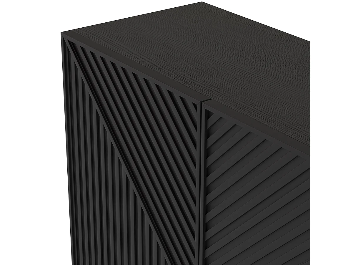 Buffet, meuble de rangement avec 3 portes aspect bois coloris noir, pieds en métal noir- Longueur 150,90 x Profondeur 40 x Hauteur 80 cm