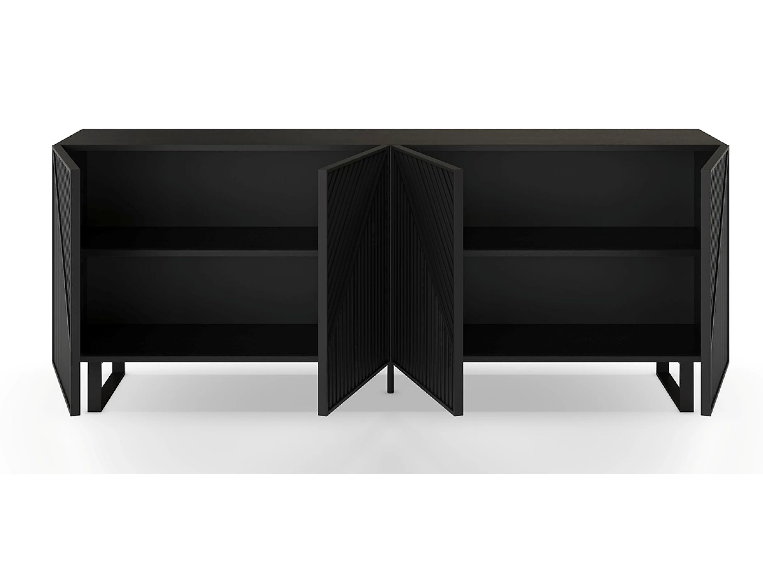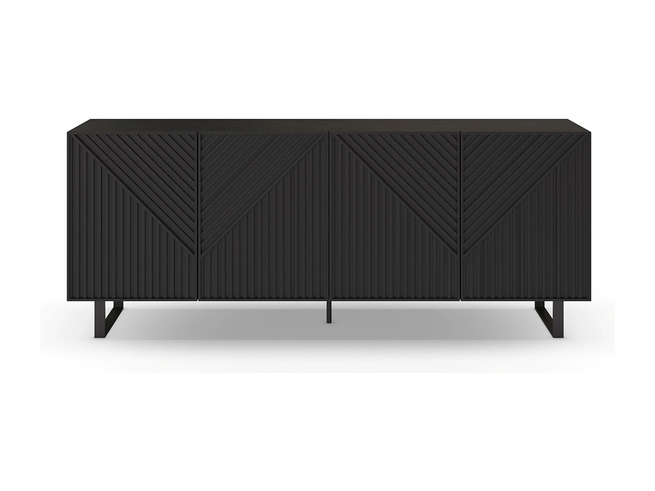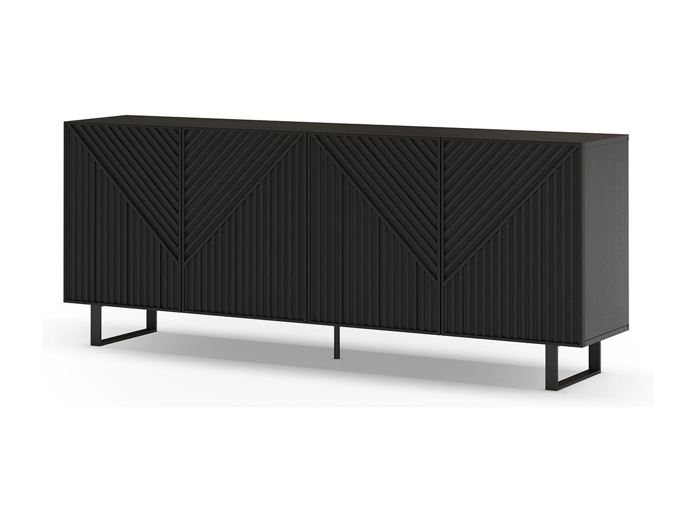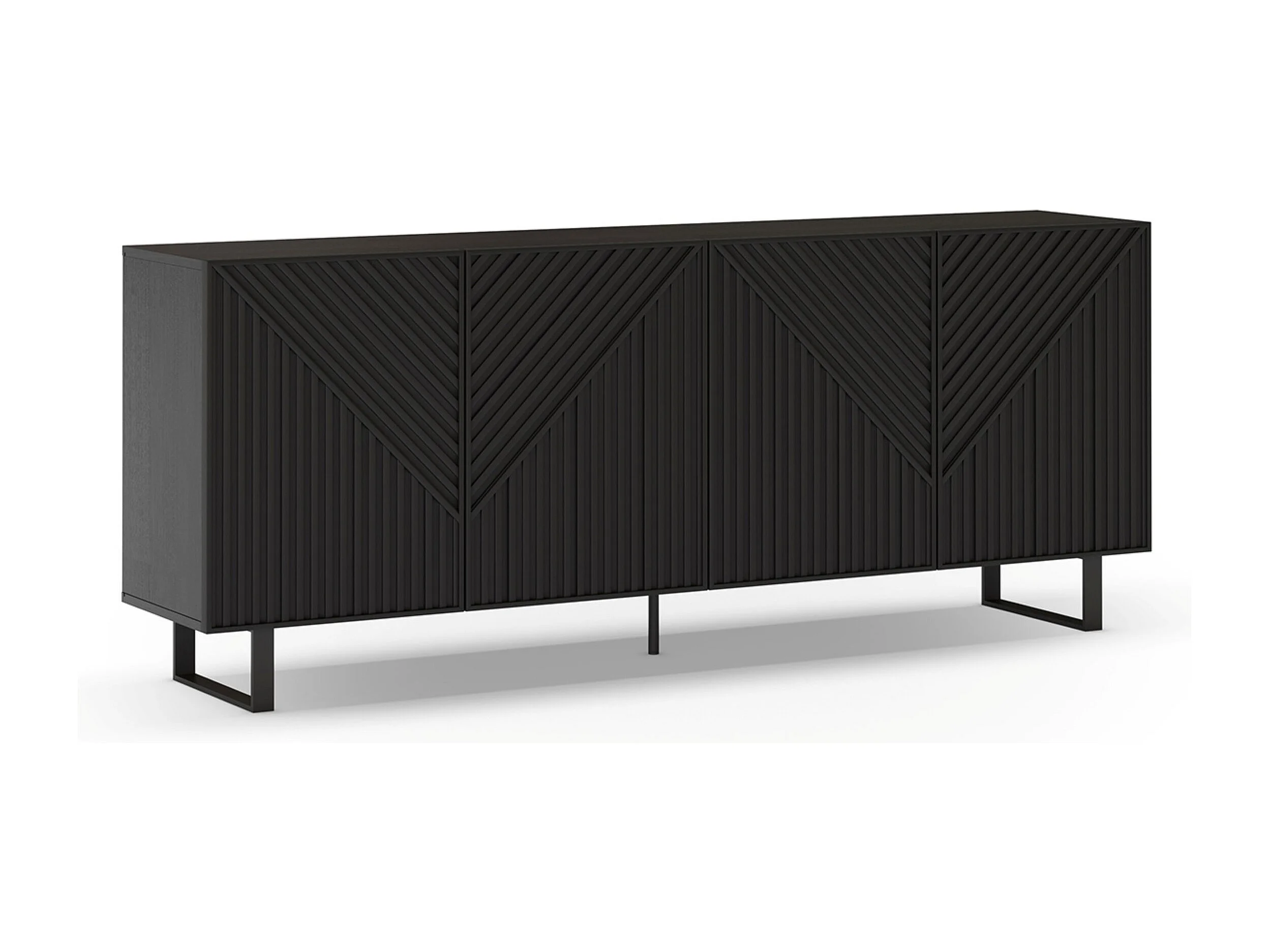 Buffet, meuble de rangement avec 4 portes aspect bois, pieds en métal noir - Longueur 201,20 x Profondeur 40 x Hauteur 80 cm