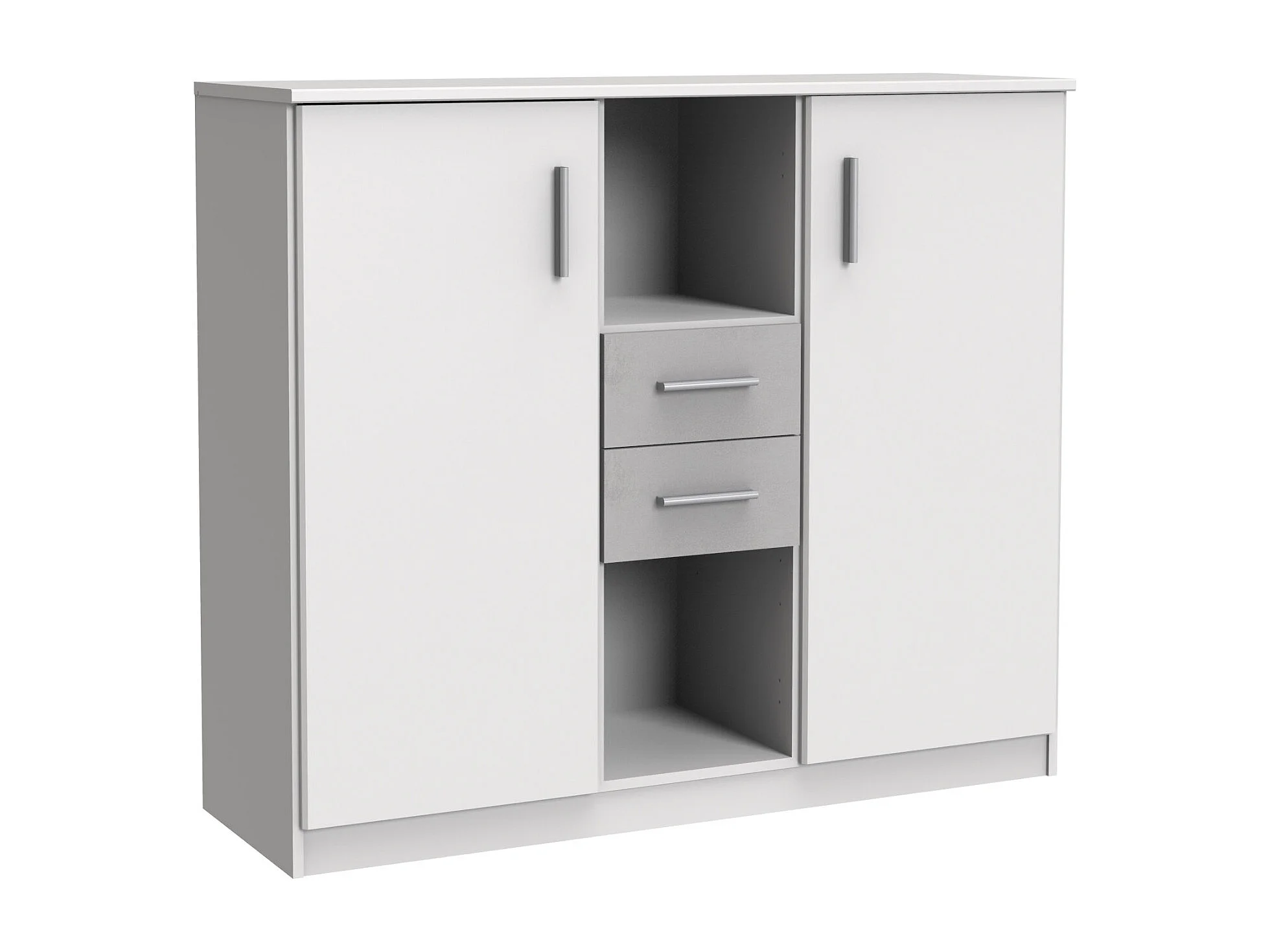 Buffet, meuble de rangement coloris Blanc, rechampis teinte béton gris clair