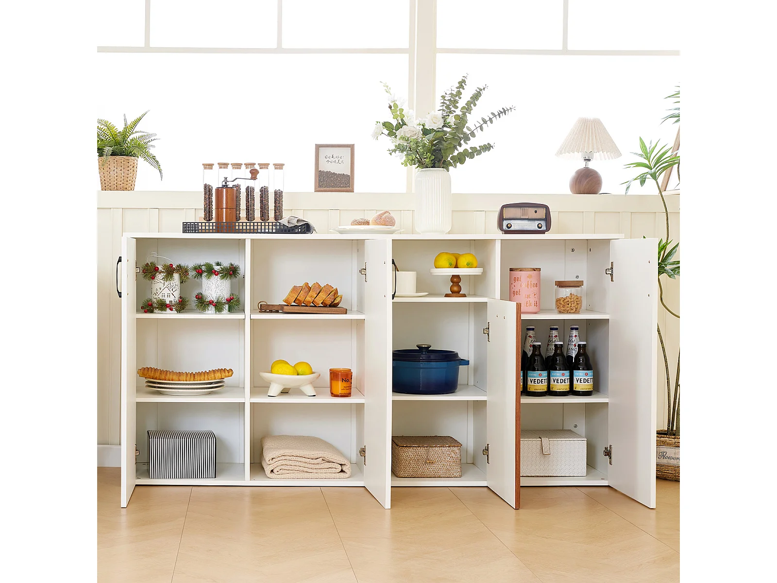 Buffet, Meuble de Rangement en Bois autoportant, Buffet avec 4 Portes pour Cuisine, Salon, Blanc