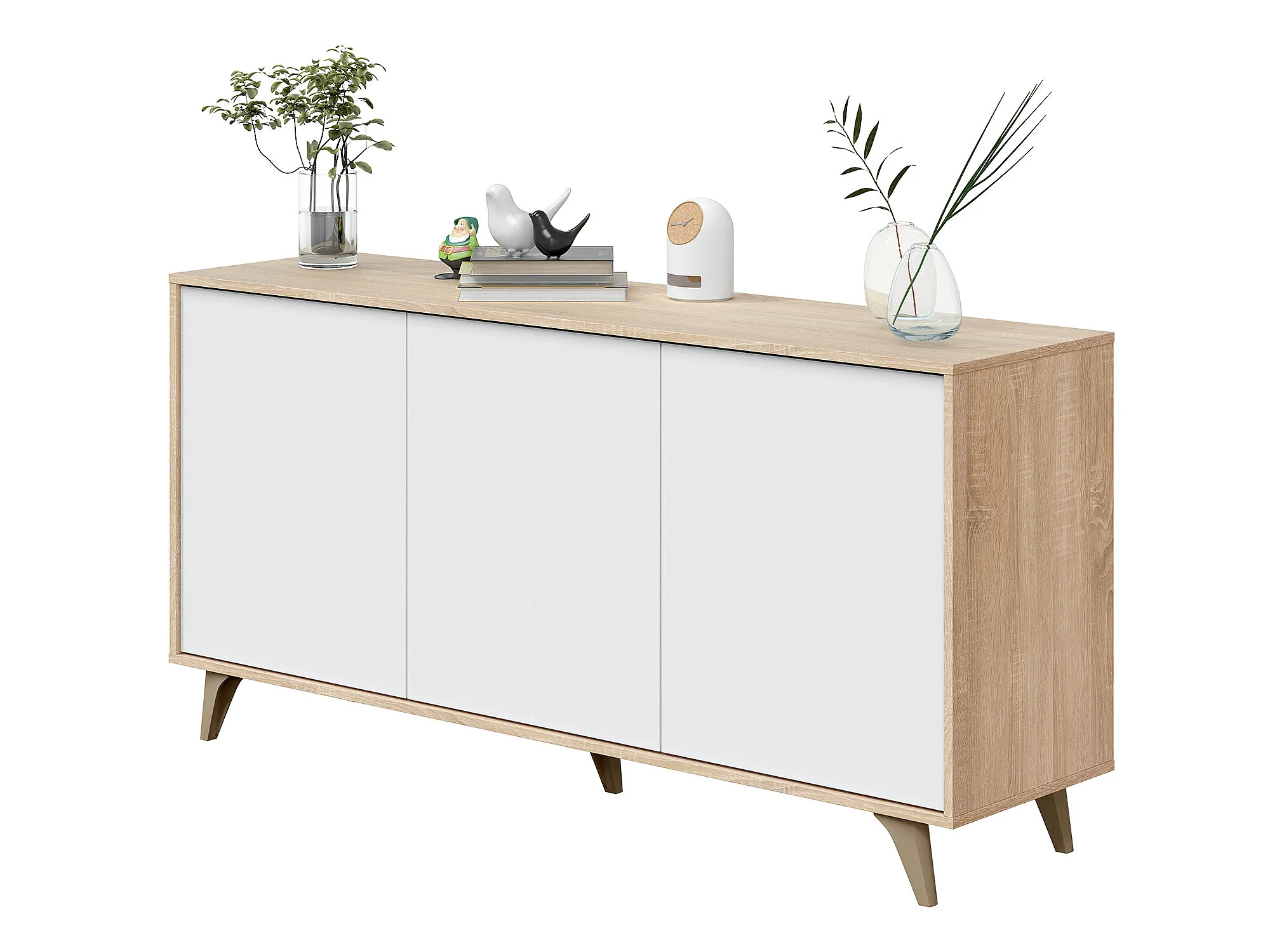 Buffet meuble de rangement en mélamine coloris chêne Canadian blanc artik - Hauteur 75 x Longueur 154 cm x Profondeur 40 cm