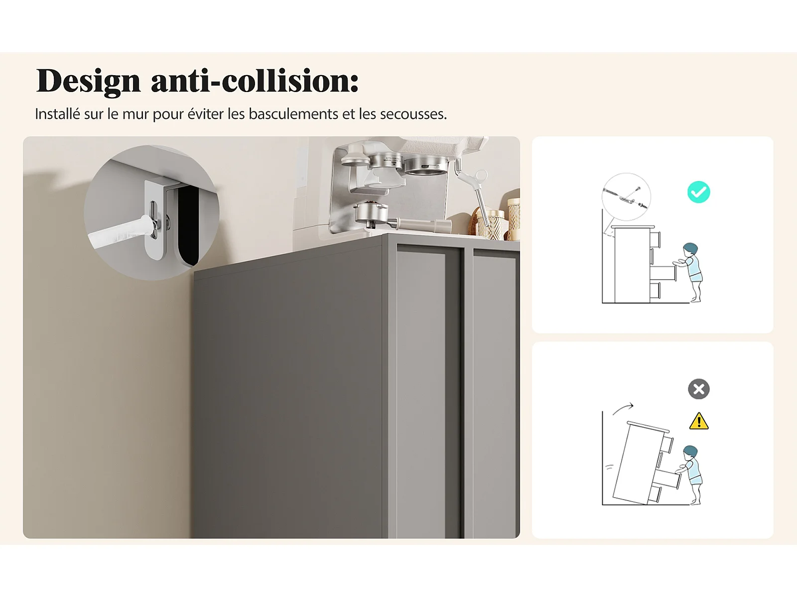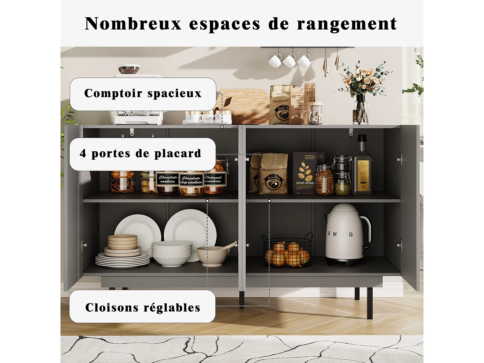 Buffet minimaliste gris 140×38,5×82,5 cm avec design unique et portes élégantes – Meuble autoportant pour salle à manger et salon
